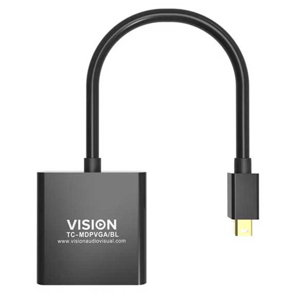 Ele se conecta ao mini-DisplayPort (também chamado de Thunderbolt) e possui um soquete VGA. O circuito ativo converte o sinal digital em sinal analógico para as telas que não possuem entrada digital.