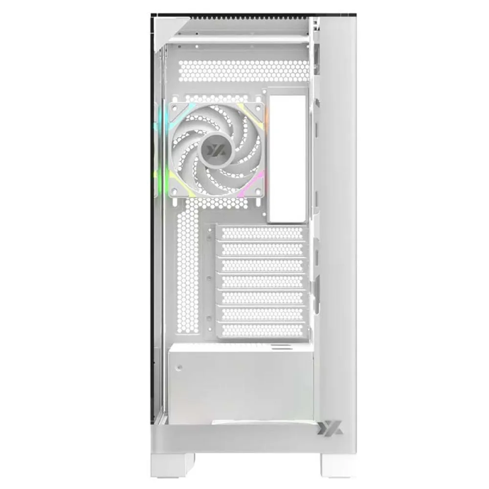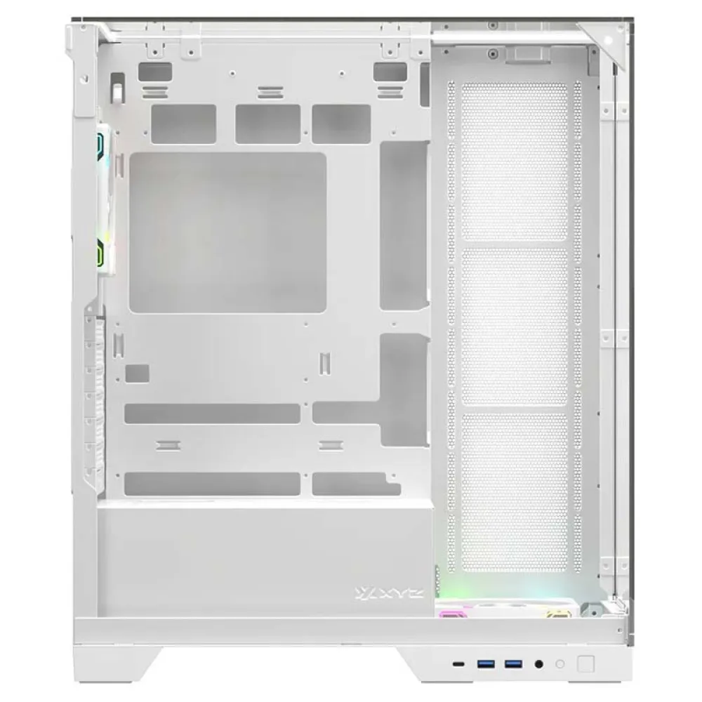 O XYZ Trifecta é construído sobre três princípios fundamentais: Fluxo de Ar Inigualável, Versatilidade Superior e Design Impressionante. Seu painel frontal de malha de alta densidade e layout interno otimizado garantem um fluxo constante de ar frio que atinge seus componentes críticos, evitando o estrangulamento térmico e maximizando o desempenho durante sessões de jogos intensas ou cargas de trabalho pesadas. O interior espaçoso oferece flexibilidade excepcional, acomodando uma ampla gama de configurações de hardware, desde configurações padrão até complexos loops de resfriamento líquido personalizados. Finalmente, um painel lateral de vidro temperado cristalino e sem ferramentas coloca seus componentes meticulosamente escolhidos em plena exibição, transformando seu PC em uma verdadeira peça central.