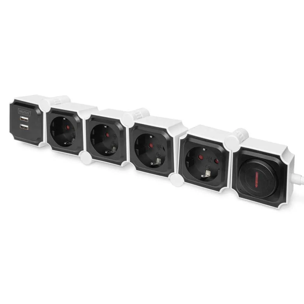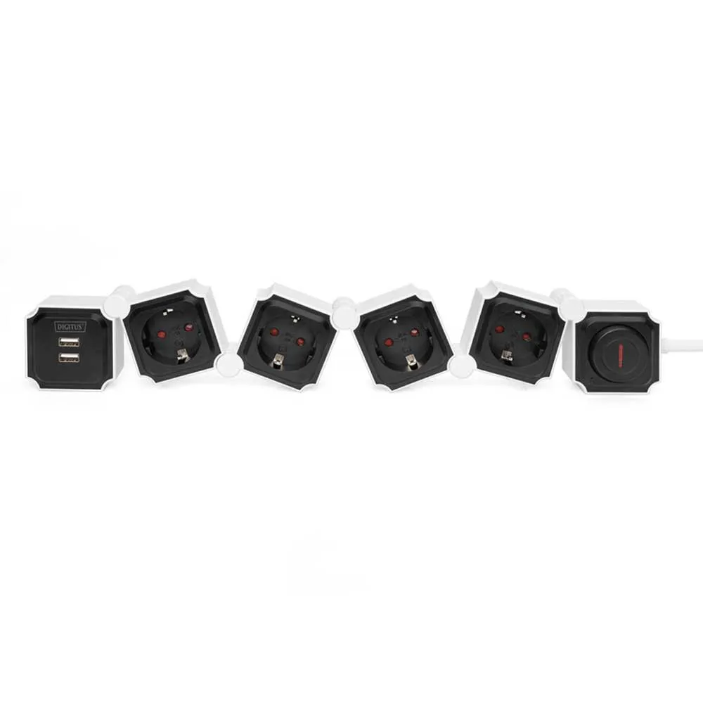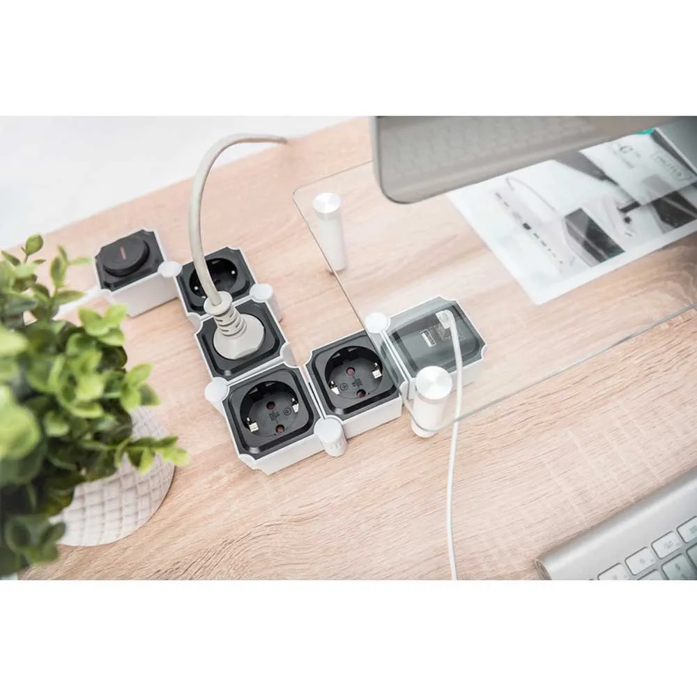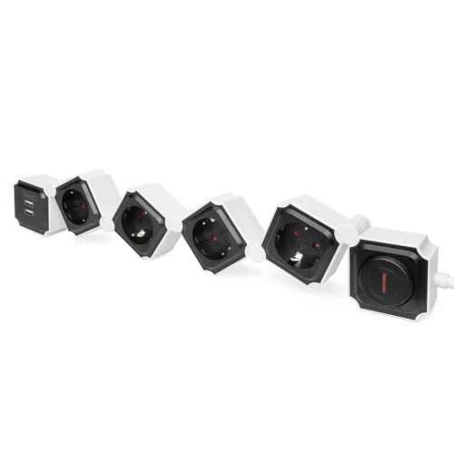 Гибкий сетевой фильтр, 3680 Вт 250 В переменного тока 50 Гц 4 розетки с заземлением, 16 A, 2 разъема USB A, 2.4 A.
