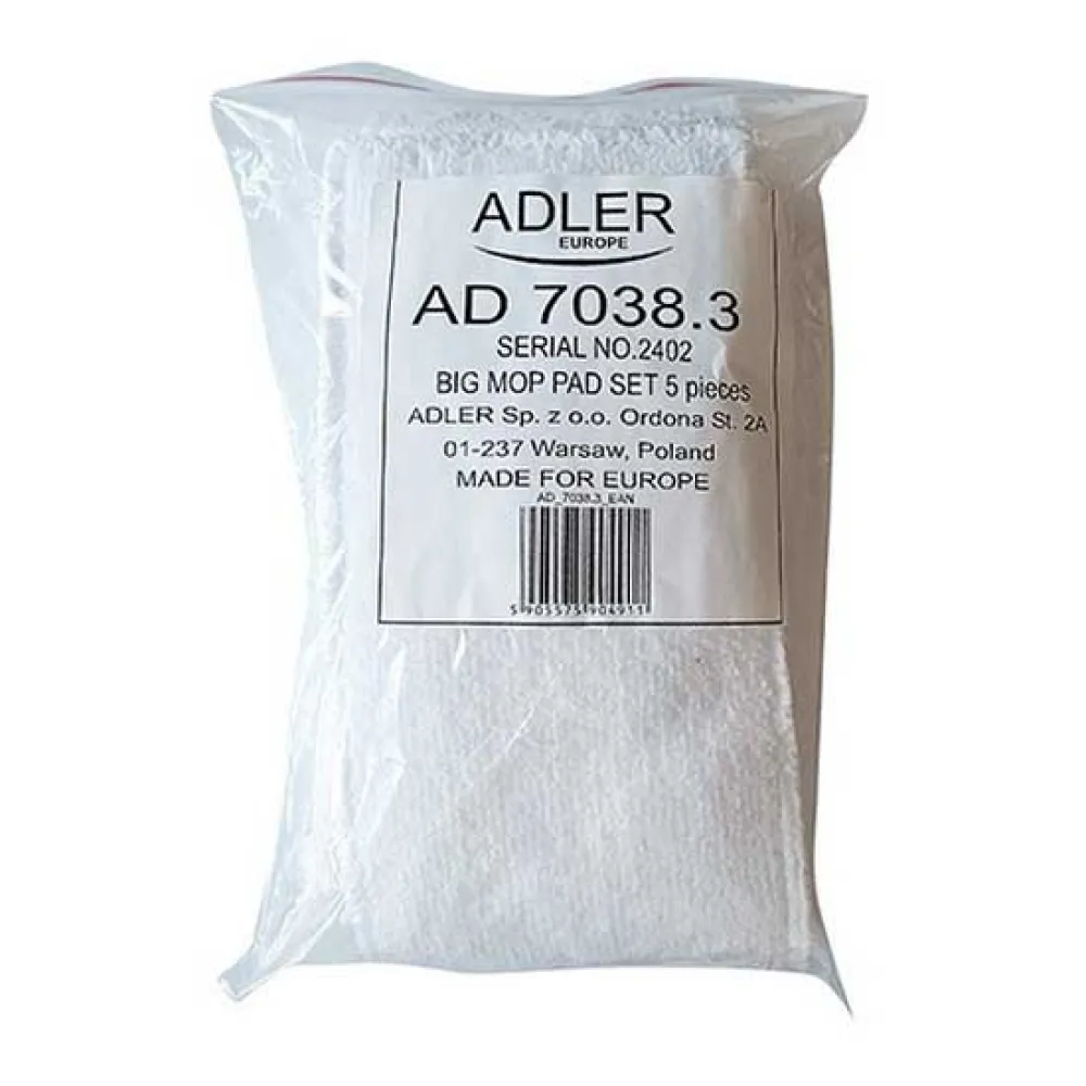 Set om 5 stora reservdukar till Adler AD 7038 ångrengörare. Tillverkade av högkvalitativa material ger de effektiv rengöring av olika ytor. Dukarna är lätta att sätta på och ta av, och deras hållbarhet garanterar långvarig användning. Perfekt för att upprätthålla hygienen hemma med ånga.