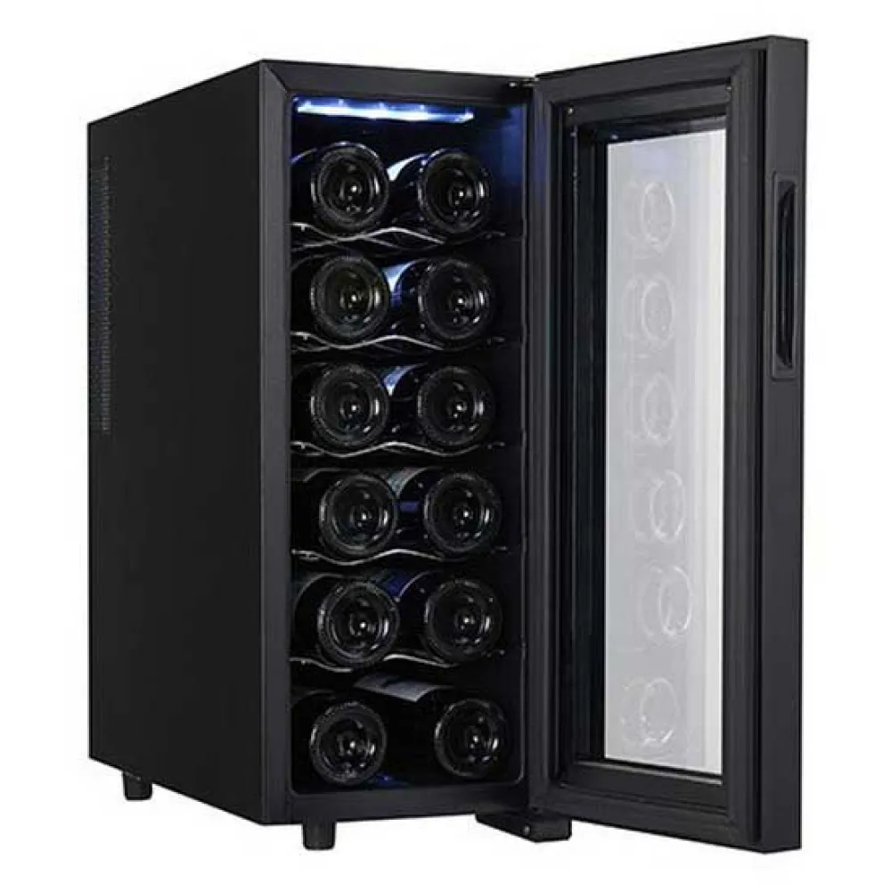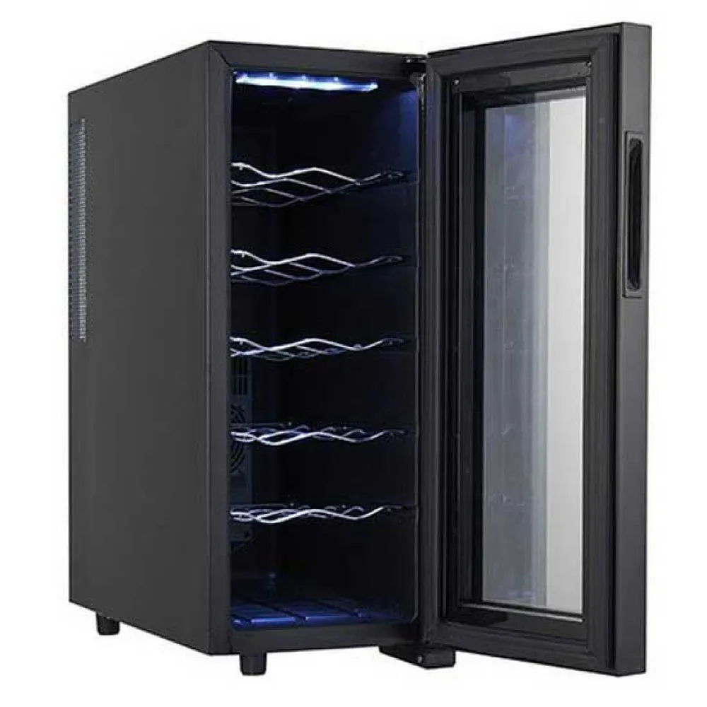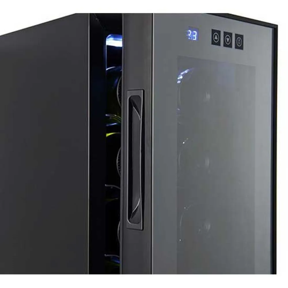 Kyl dina favoritdrycker med stil med ADLER vinkyl. Dess eleganta design rymmer upp till 12 flaskor på profilerade hyllor i dess 33L kammare. Det avancerade termoelektriska kylsystemet säkerställer viskande tyst drift (26 dB) och låg energiförbrukning. Ställ enkelt in den perfekta temperaturen mellan 12-18°C med den intuitiva pekskärmen. Den isolerade glasdörren med UV-filter skyddar din samling, medan interiör LED-belysning visar upp den vackert. Ett sofistikerat och effektivt tillskott till alla hem. EU-kontakt