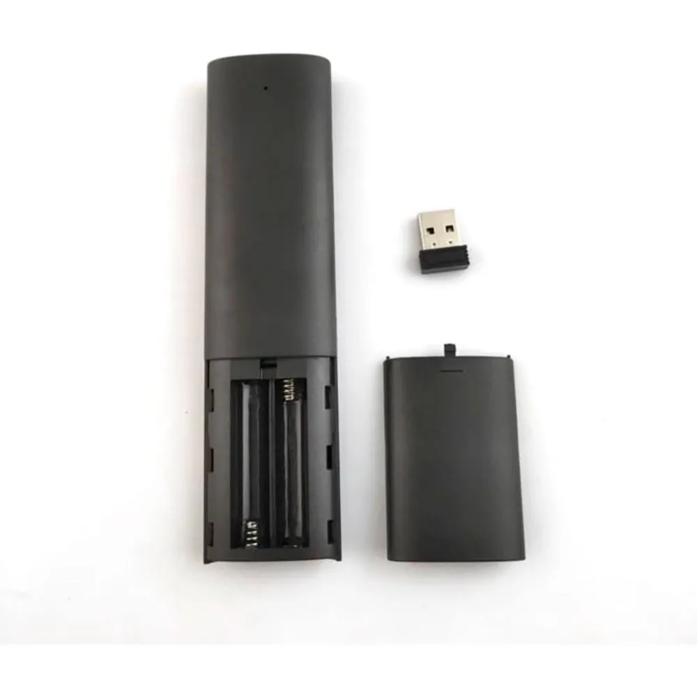 Bluetooth- och 2.4G-anslutning - Räckvidd upp till 15 meter - Kompatibilitet med Smart TV, Android TV-box och mini-datorer - Röststyrning - Drivs med två AAA-batterier - Tillverkad av svart plast - Inkluderar USB-mottagare.