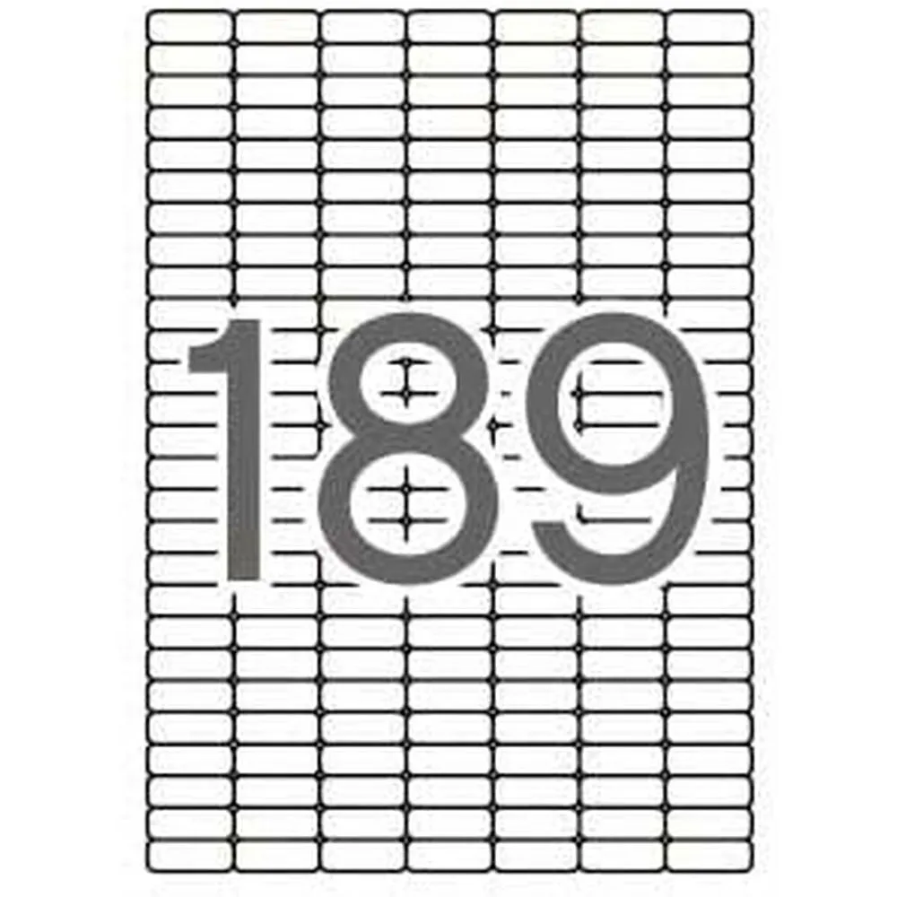 Etiketter med rundade hörn, storlek 25.4x10.0 mm med avtagbar limning för flera användningsområden. Förpackning med 25 ark (4725 etiketter). Den avtagbara limningen gör att etiketten kan tas bort utan att lämna spår. Perfekt för att identifiera föremål, sätta prislappar på produkter, fästa på glas eller keramik, etc. Utmärkt kvalitet för användning med bläckstråleskrivare, laserskrivare och kopiatorer.