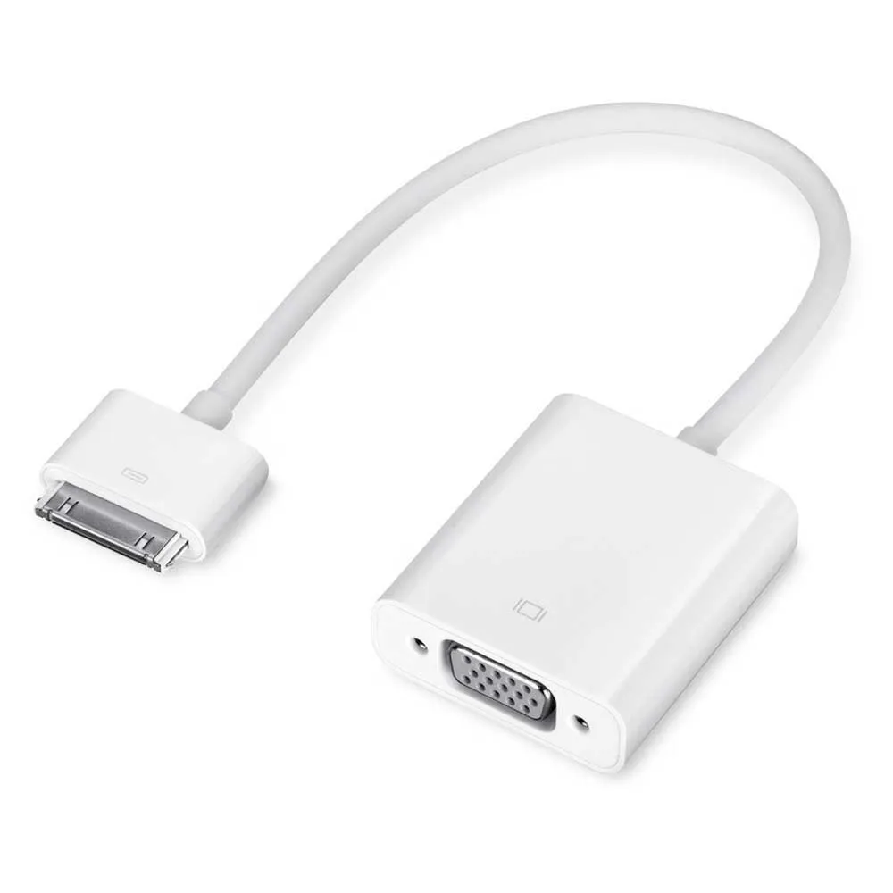 Apple VGA-adaptern ansluts till din iPad, iPhone 4, iPhone 4S, iPod touch (4:e generationen), iPad Dock eller Universal Dock via dockningskontakten och till din projektor eller bildskärm med VGA-adaptern.