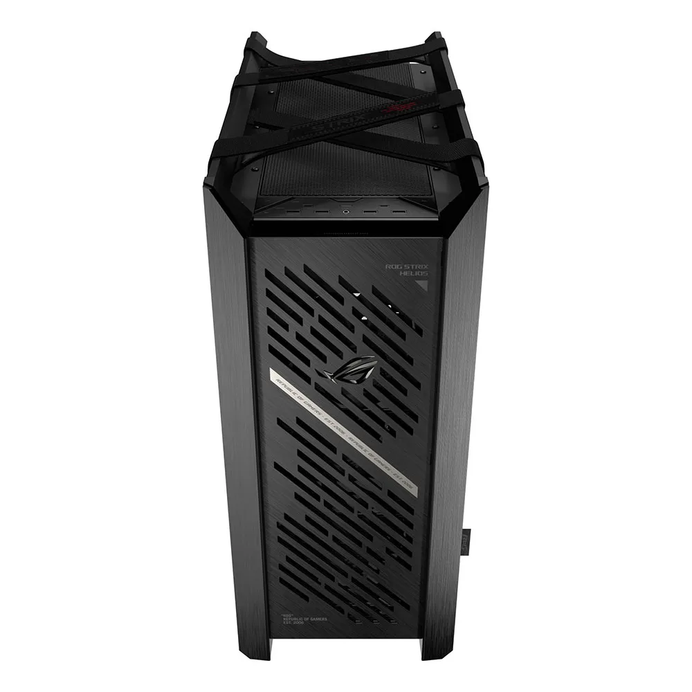 ROG Strix Helios II är ett premium miditorn-speldatorchassi med dubbla sidopaneler i härdat glas, en förfinad aluminiumram och en diamantgrillfrontpanel med ett 3D-strukturerat frontfilter.