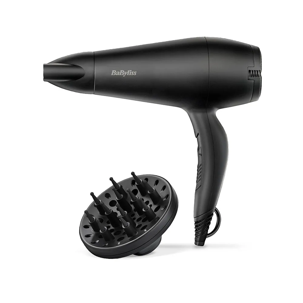 Babyliss 2000w hårtork med slät svart diffusor d215.