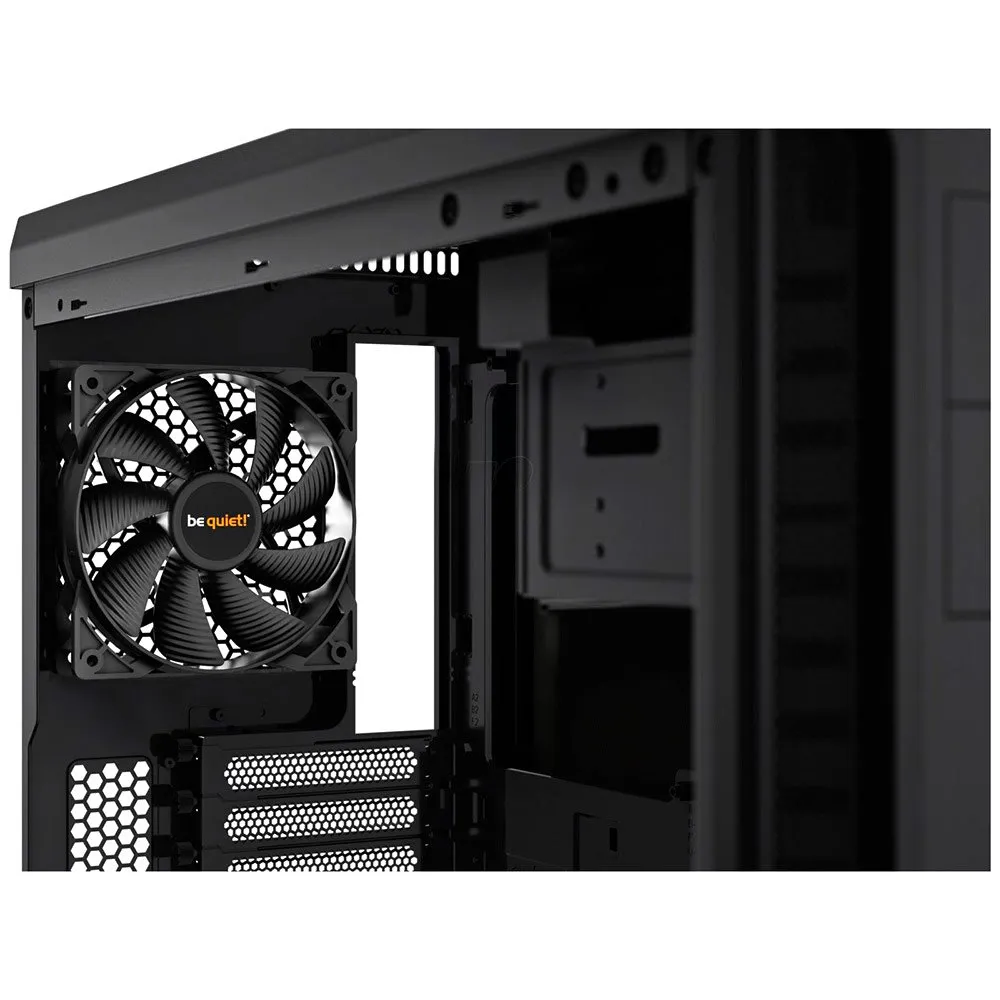 Två förinstallerade Pure Wings 2-fläktar med nio luftflödesoptimerade fläktblad minskar turbulensen och ökar lufttrycket: 120 mm bak, 140 mm fram. Tillåter upp till fyra ytterligare kylfläktar.