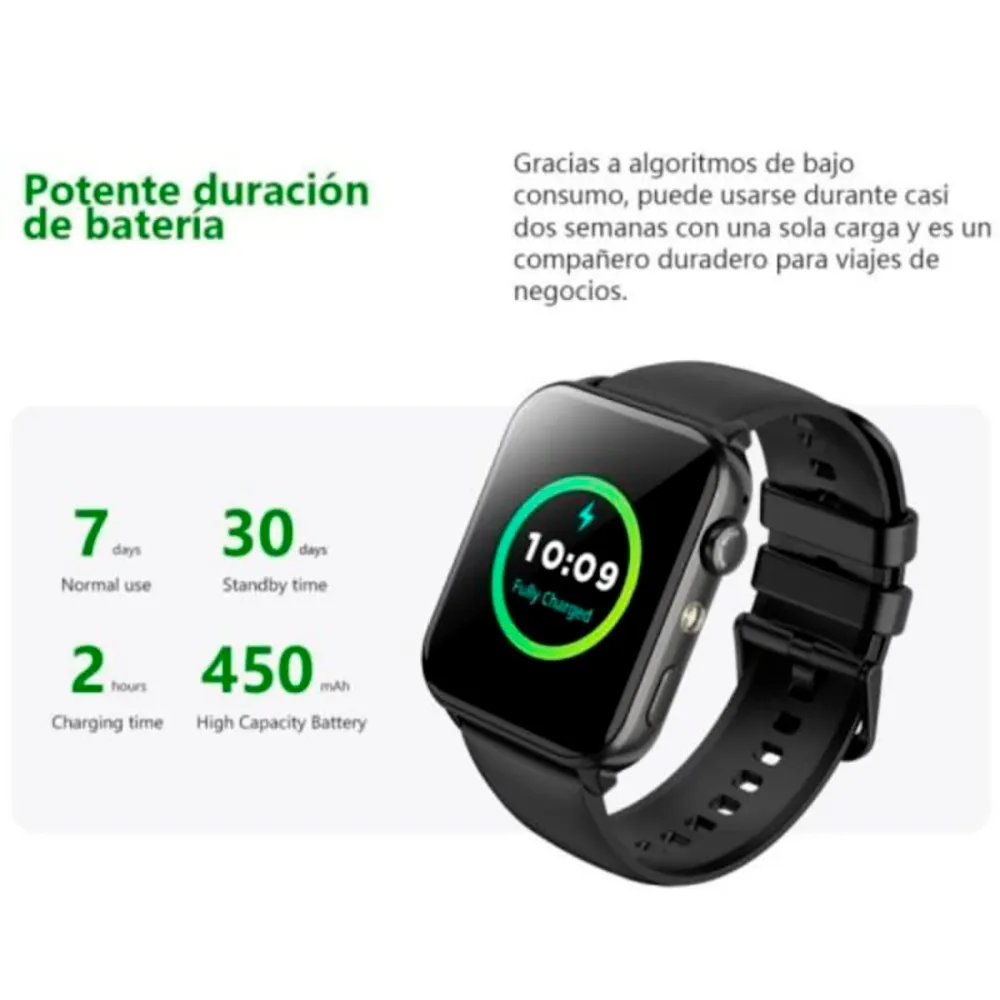 Med en 1.91″ pekskärm, ett 450 mAh batteri som kan nå upp till 30 dagar i standby, och Bluetooth 5.2 för samtal med integrerad högtalare och mikrofon, koncentrerar denna smartklocka de grundläggande funktionerna i en lätt kropp. Den sidomonterade LED-ficklampan och AI-röstassistenten ger extra användbarhet när mobiltelefonen inte är till hands.