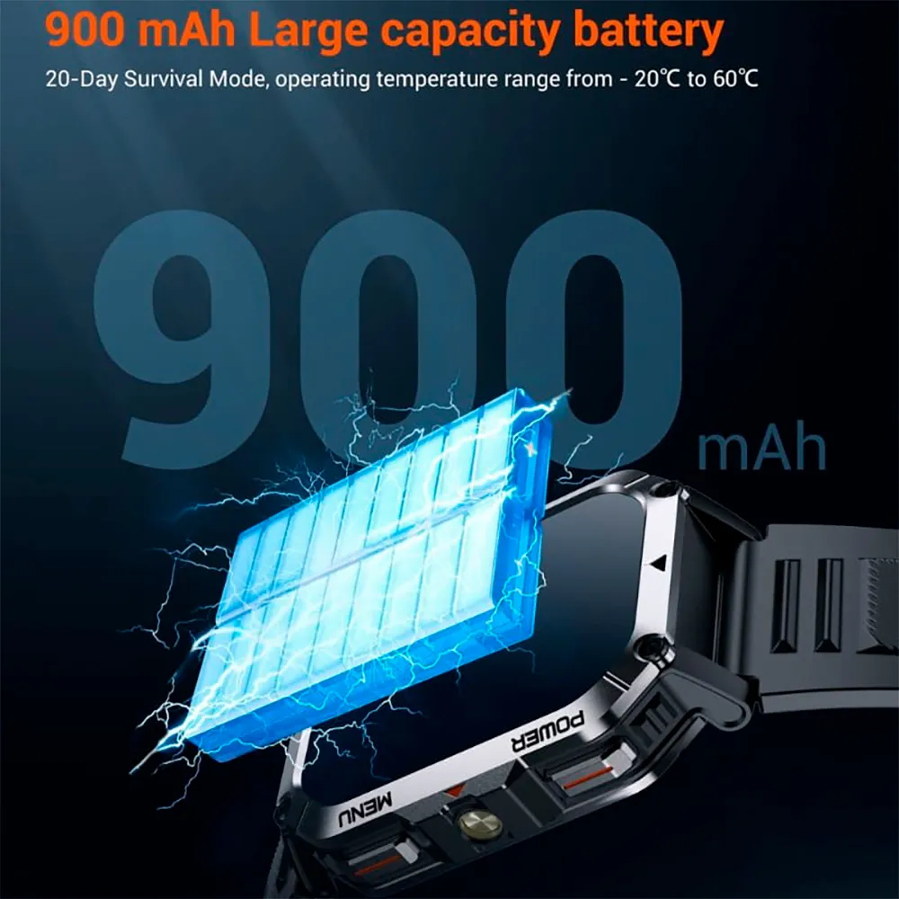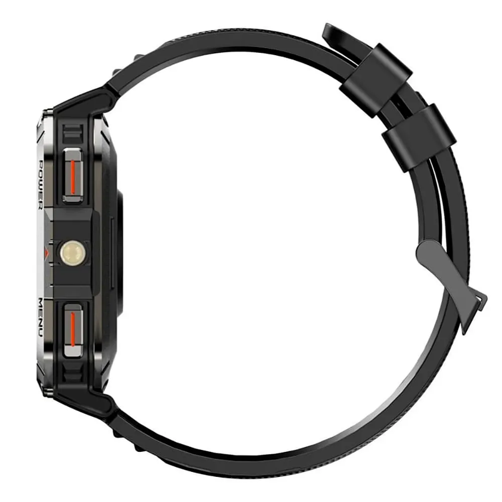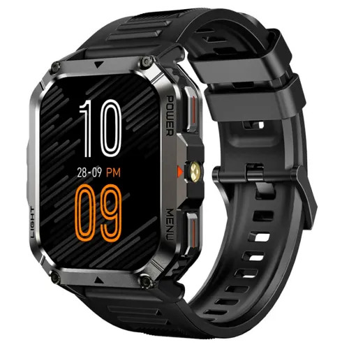- Smartklockan är förberedd för alla typer av utomhusaktiviteter och har ett dubbelt legeringsskydd på sidorna av kroppen som ger överlägset motstånd mot ogynnsamma temperaturer, vatten och damm, vilket säkerställer större hållbarhet. Den är också utrustad med en 2.01-tums TFT-skärm med mer än 100 urtavlor tillgängliga för anpassning.