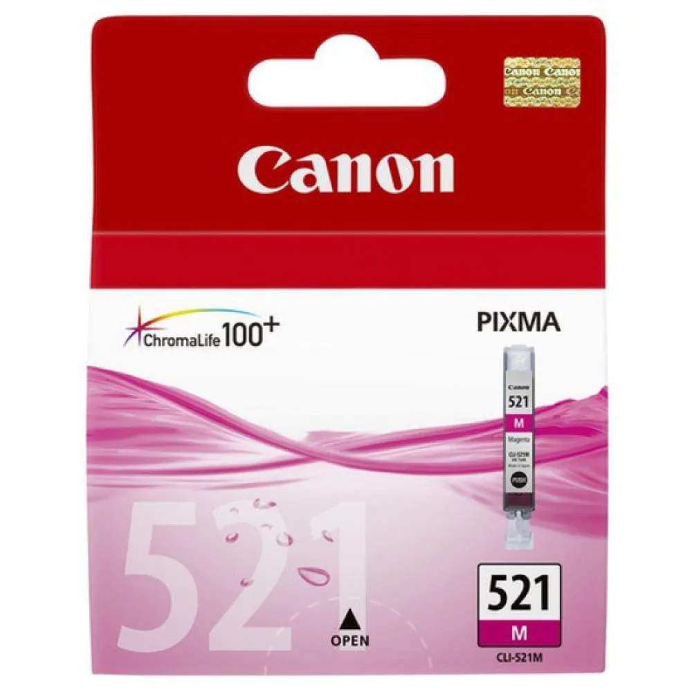 Upplev briljant färg och exceptionell kvalitet med den äkta Canon CLI-521 magenta bläckpatronen. Detta originala färgbaserade bläck är konstruerat för din PIXMA-skrivare och väcker foton och dokument till liv med fantastisk lyster och verklighetstrogna hudtoner. Som en del av ChromaLife100+-systemet skapar det utskrifter som motstår blekning i generationer. Det kostnadseffektiva systemet med individuella bläcktankar innebär att du bara byter ut den färg som tar slut, vilket sparar pengar och minskar avfall. En smart LED-lampa talar till och med om när det är dags för ett byte. Lita på Canon för felfri, igensättningsfri prestanda som skyddar din skrivare