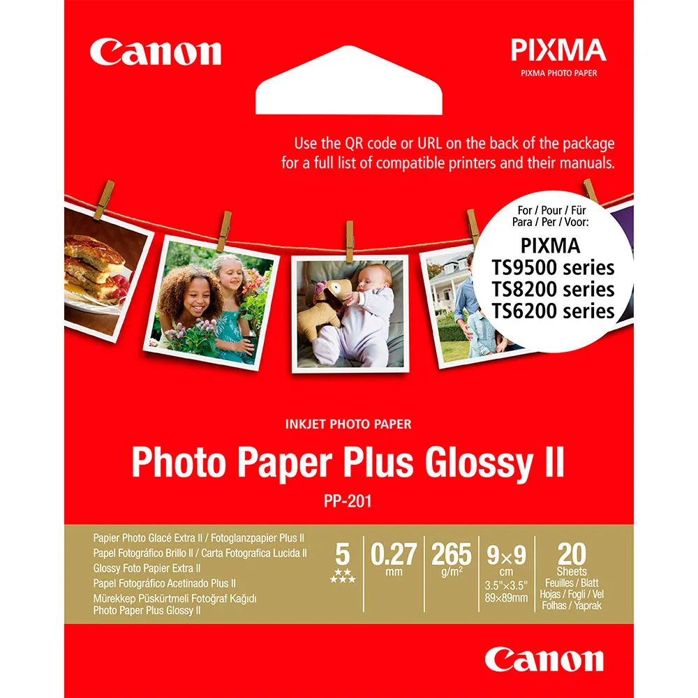 Skriv ut dina favoritfoton på sociala nätverk på din kompatibla Canon fotoprinter, från bra tider med vänner till sublima solnedgångar - de ser alla otroliga ut på Canons 13x13 cm (5x5 ”) kvadratformat Photo Paper Plus Glossy II. Djupa svarta och lysande färger kombineras för att producera foton i premiumkvalitet, och när de används med äkta Canon-bläck ser dina utskrifter utmärkt under många år framöver.