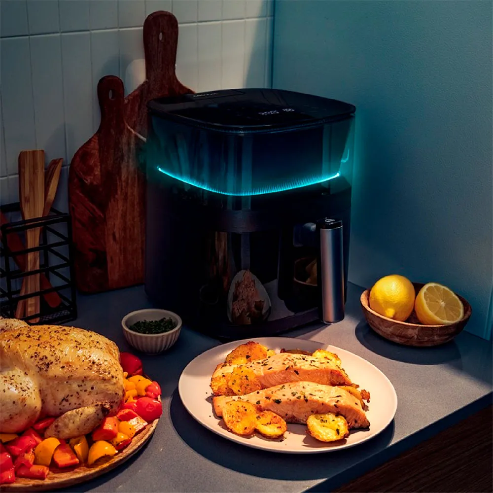 Med sin slanka och moderna design ser denna luftfritös inte bara bra ut på din bänkskiva utan ger också enastående prestanda.
