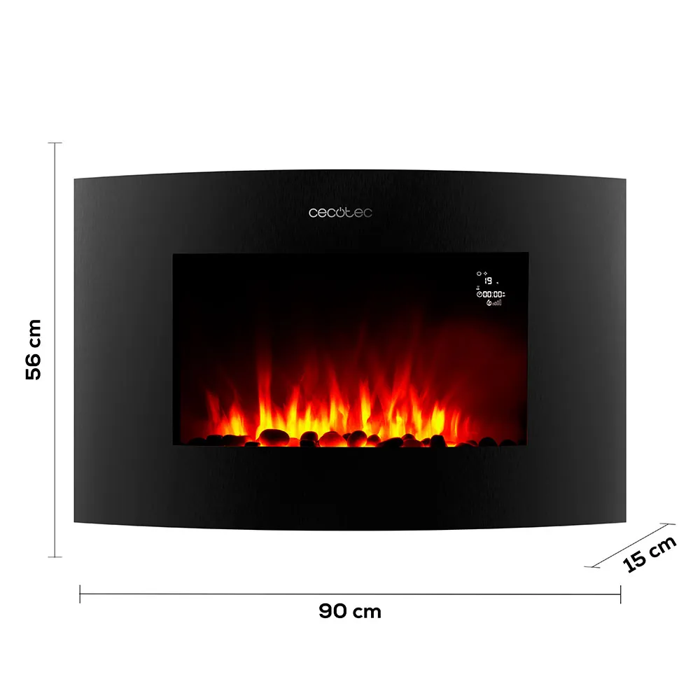 Dess böjda design ger en större betraktningsvinkel som, tillsammans med stenarna inuti, förstärker kaminens elegans för att placeras var som helst i hemmet.