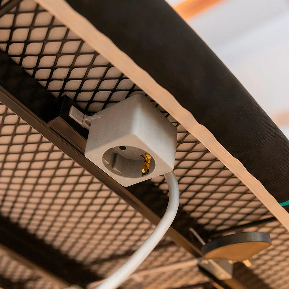 - Kontakt fäst på brädan för att förbättra strykjärnets rörlighet under strykning.