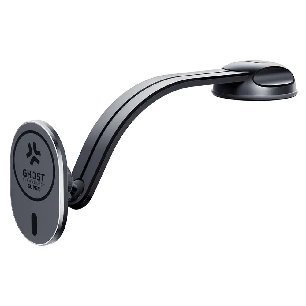 GHOSTSUPMAGFL är ett magnetiskt bilfäste för instrumentbräda och/eller vindruta, kompatibelt med Magsafe magnetiska inriktning som finns i de senaste iPhone-modellerna, från och med 12. Den förnyade designen med en plaststruktur gör den mer effektiv när det gäller stabilitet och grepp. När du placerar din iPhone på fästet kommer den cirkulära magneten automatiskt att haka fast i enhetens magnetiska modul och låsa den ordentligt på plats. Tack vare den superstarka sugkoppen kan du säkert fästa GHOSTSUPMAGFL på din instrumentbräda. Huvudet roterar 360°, medan fästets arm är flexibel, så att du kan justera fästet till bästa vinkel.