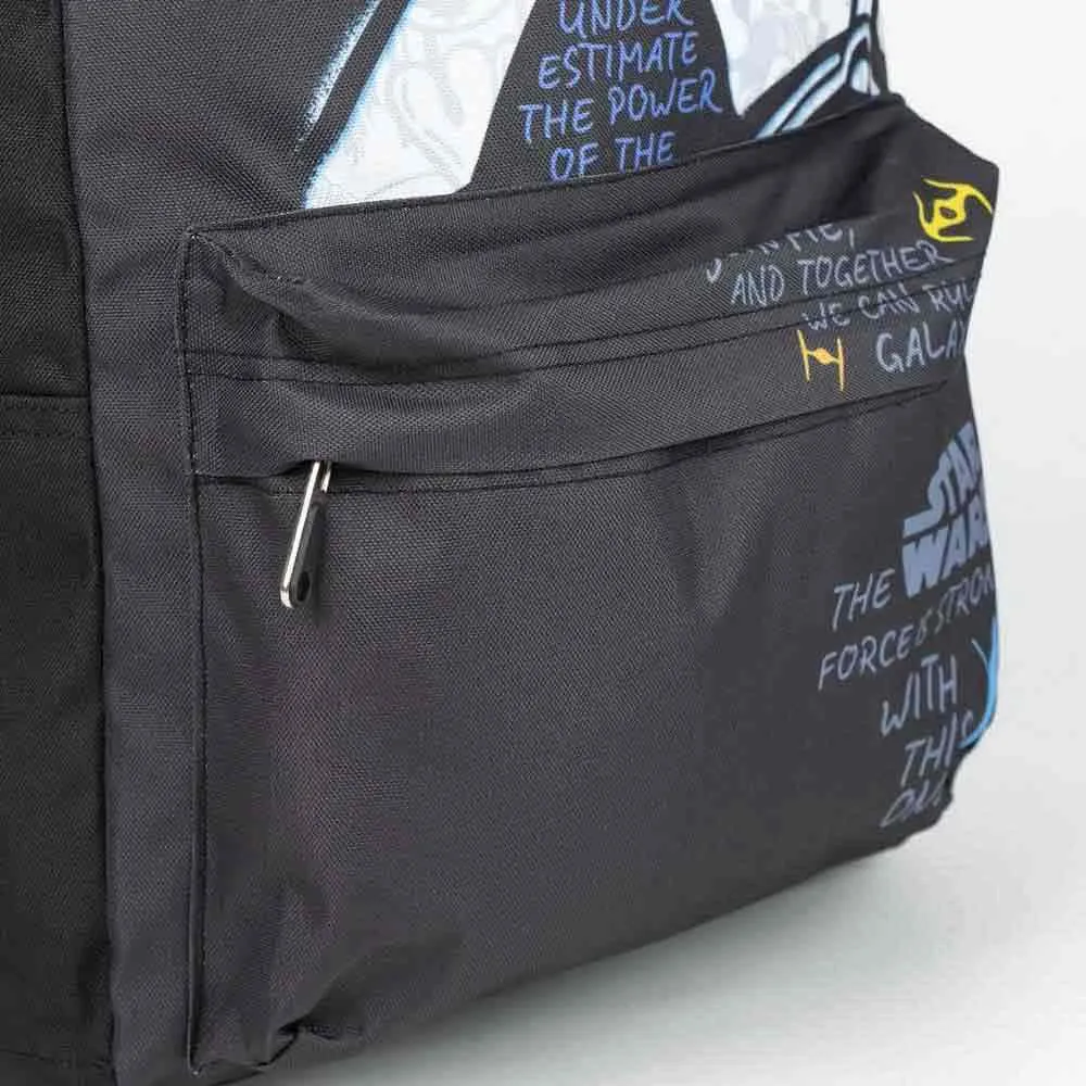 Autentisk Star Wars-design: Har en stilren svart finish med ikoniska fraser från Star Wars-sagan, officiellt licensierad av CERDA GROUP Rymligt huvudfack: Ett stort huvudfack med dragkedja ger gott om förvaringsutrymme för alla dina dagliga nödvändigheter.