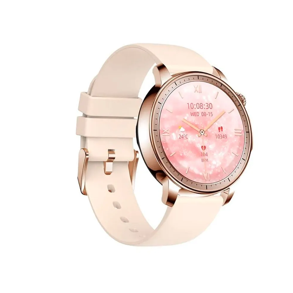 1.32-tums AMOLED-skärm - Dubbel Bluetooth - Bluetooth-samtal - IP68 - Puls- och SpO2-sensor - Blodtryckssensor - Sportlägen - Kontroll av kvinnohälsa - Upp till 5 dagar - Guld.