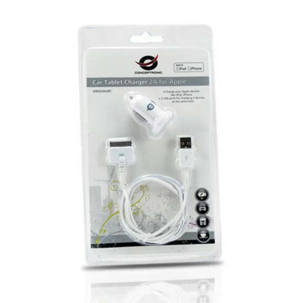Denna Apple-kabel med billaddare för surfplatta är den idealiska lösningen för att ladda din iPod, iPhone eller iPad via cigarettändaruttaget i din bil, lastbil eller båt! Billaddaren för surfplatta fungerar med 12-24 volt och omvandlar dem automatiskt till de 5 volt som används av USB-enheter.