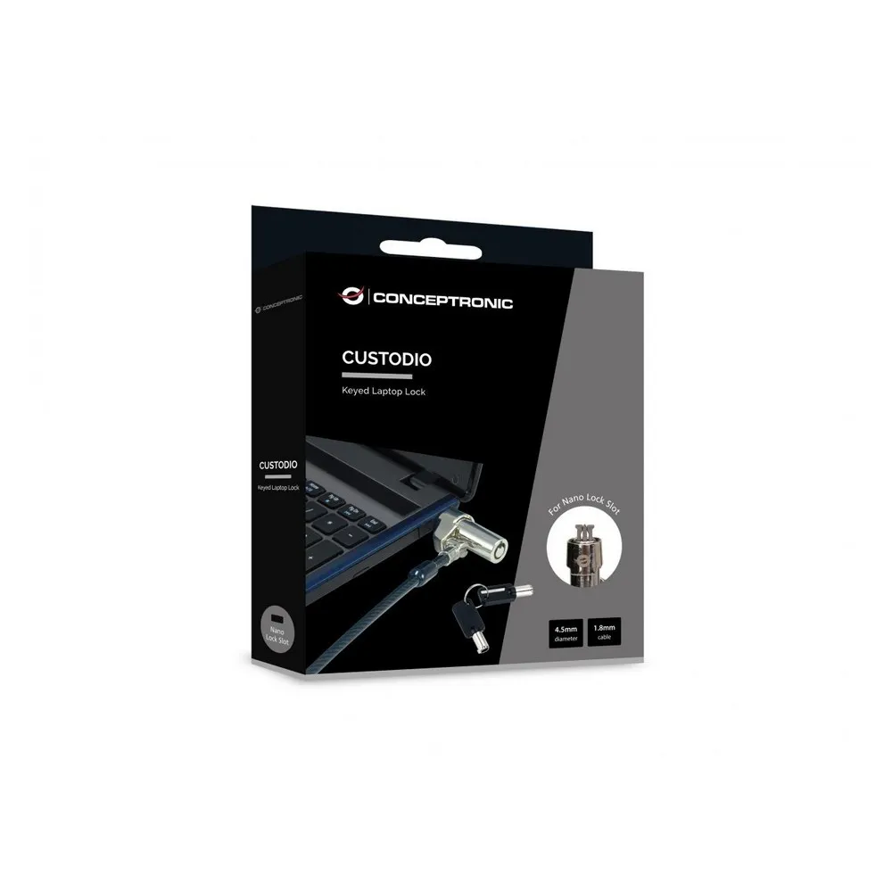 Conceptronic CUSTODIO02BN Keyed Laptop Lock, Nano Security Slot, 1.8 m.