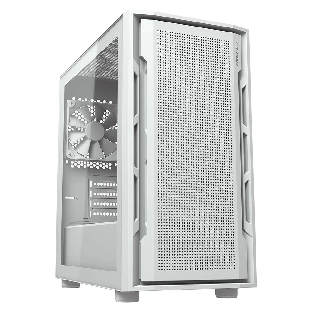Den perforerade frontpanelen, som ärvts från sin större syskon – Uniface RGB – ger överlägsen ventilation och behåller COUGARs distinkta visuella identitet, medan en vänsterpanel i härdat glas visar upp din byggnation.