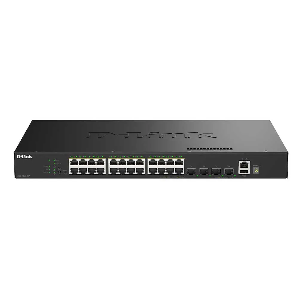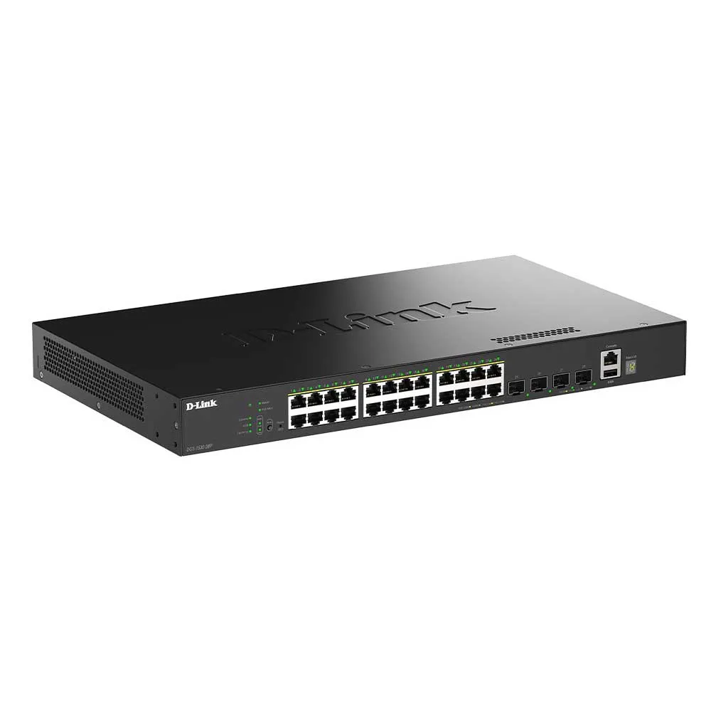 D-Link 28-Port Gigabit Stackable PoE+ Smart Managed Switch med 4x10G SFP+ portar.