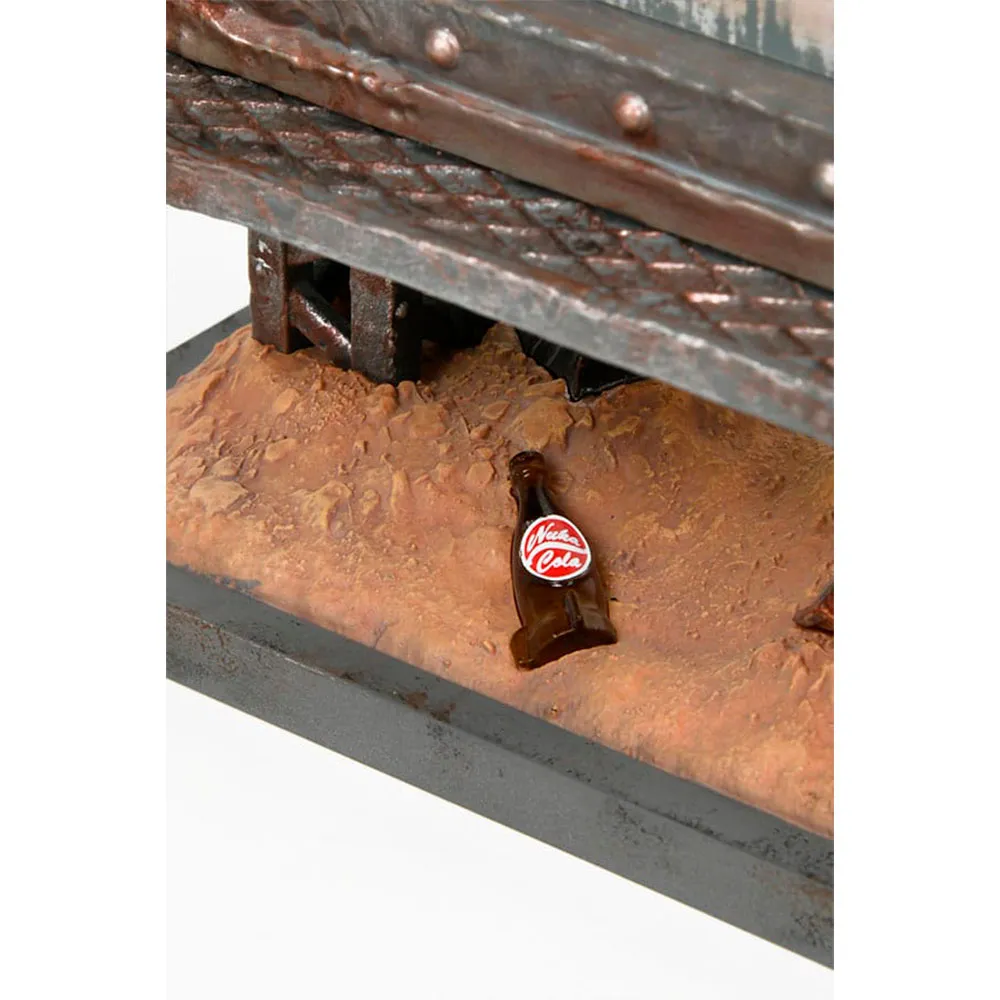 Autentisk reklamskyltsdesign: Noggrant utformad för att likna de väderbitna, postapokalyptiska reklamskyltarna som är utspridda över Commonwealth och bortom, har denna pjäs en detaljerad ram och stödstruktur. Dess kompakta, skrivbordsvänliga storlek säkerställer att den gör ett betydande intryck utan att överväldiga ditt utrymme.