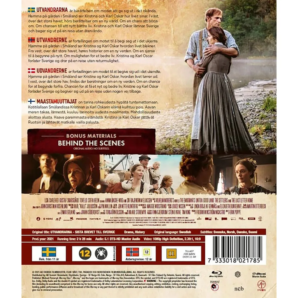 Denna definitiva DVD-utgåva låter dig uppleva varje ögonblick av deras förrädiska Atlantöverfart och deras kamp för att bygga ett nytt hem i Minnesotas oförlåtande vildmark. Filmen fångar mästerligt de enorma utmaningarna, djupa uppoffringarna och det obrytbara bandet av familj och kärlek som driver deras strävan. Känn tyngden av deras beslut, smärtan av deras förluster och den svindlande hoppet om deras triumfer. Regissören Erik Poppe levererar ett filmiskt mästerverk, förankrat av kraftfulla och rörande prestationer från Lisa Carlehed som den motståndskraftiga Kristina och Gustaf Skarsgård som den beslutsamma Karl-Oskar.
