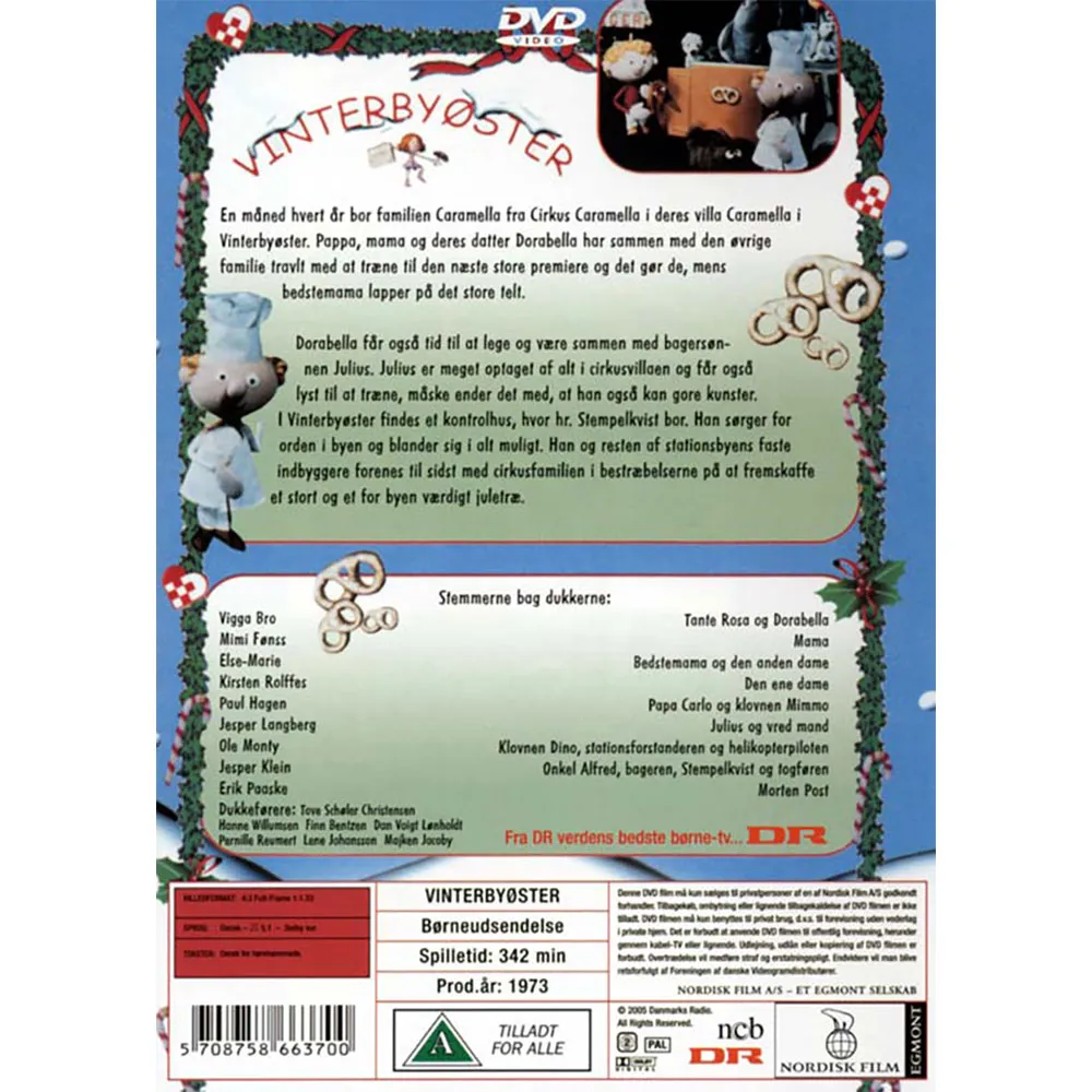 Huvudattraktionen i denna samling är den kompletta, ocensurerade berättelsen om Vinterbyøster, ursprungligen producerad av Danmarks Radio (DR). Följ den älskvärda musefamiljen – pappa Theodor, mamma Trine och deras lille son Thomas – när de förbereder sig för julen. Bli förtjust över cirkusens ankomst, ledd av den storslagne Signor Caramba och hans vänliga clownbjörn, Dorabella. Varje avsnitt presenterar ett litet, självständigt äventyr som bidrar till den övergripande berättelsen och firar teman som vänskap, gemenskap och problemlösning. Den unika och minnesvärda visuella stilen, som väcks till liv genom klassisk marionetteater, ger serien dess distinkta och oförglömliga karaktär. Detta 2-skivors set bevarar programmet i sitt ursprungliga format, så att du kan njuta av detta stycke TV-historia precis som det var tänkt.