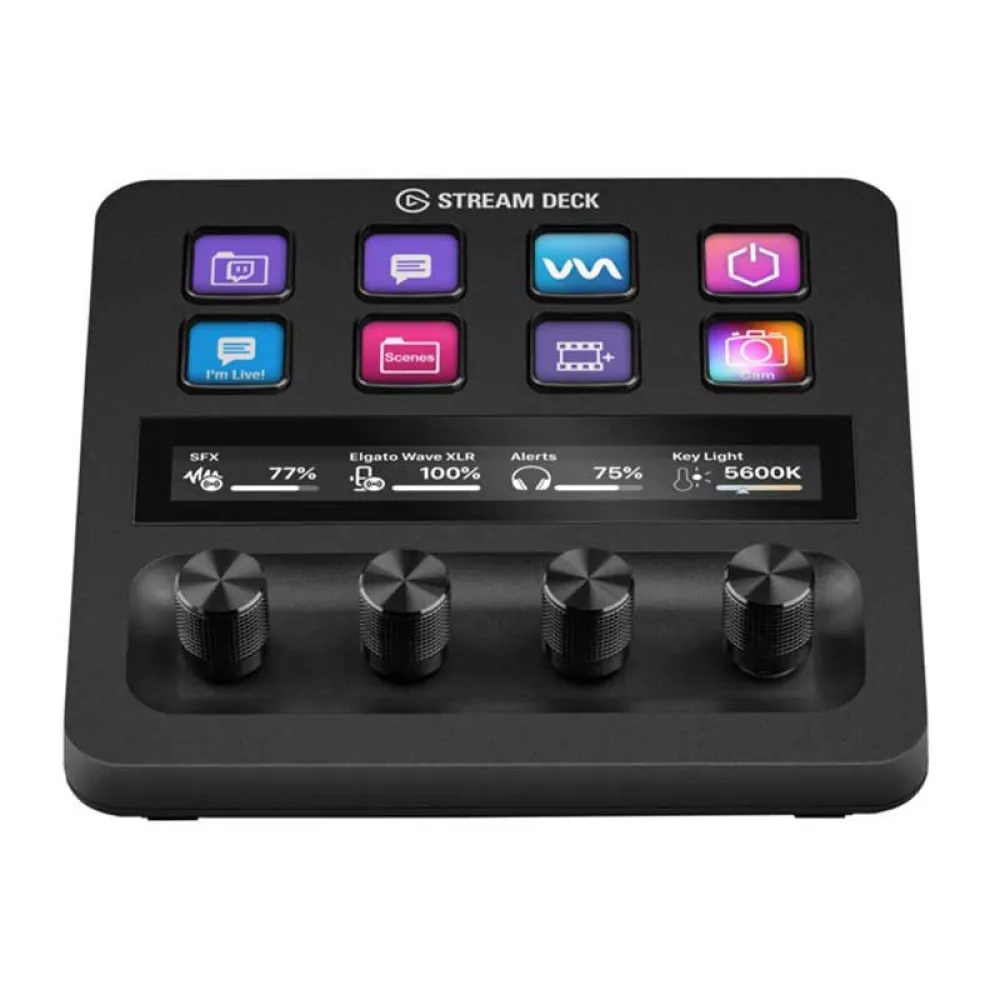 Ikonisk Stream Deck-teknik med anpassningsbara LCD-tangenter, rattar och pekskärm.