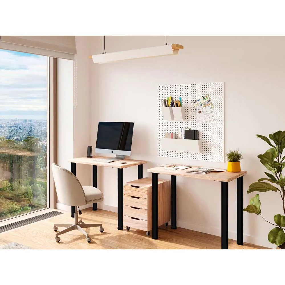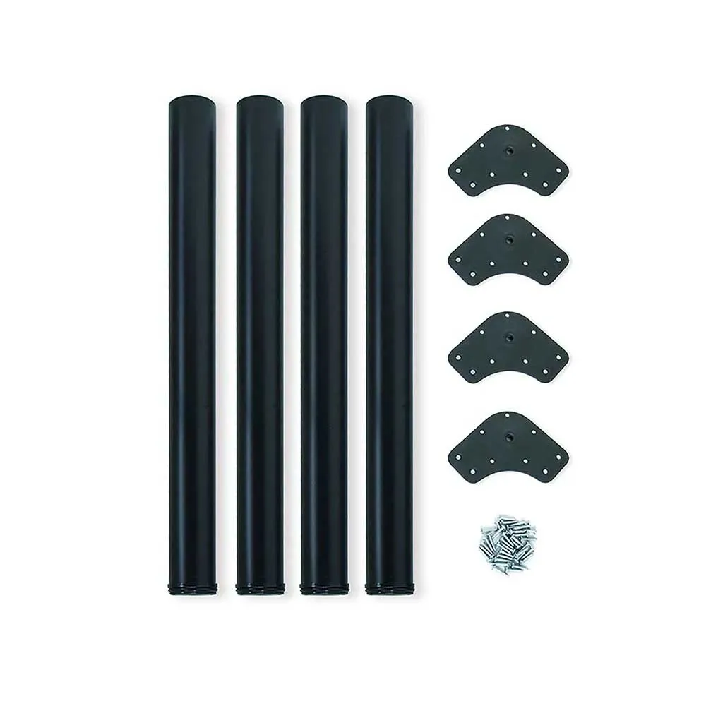 Deras enkla montering sker genom att skruva fast plattan på bordsskivan med skruvar (medföljer i förpackningen) och sedan skruva fast benet på den plattan.
