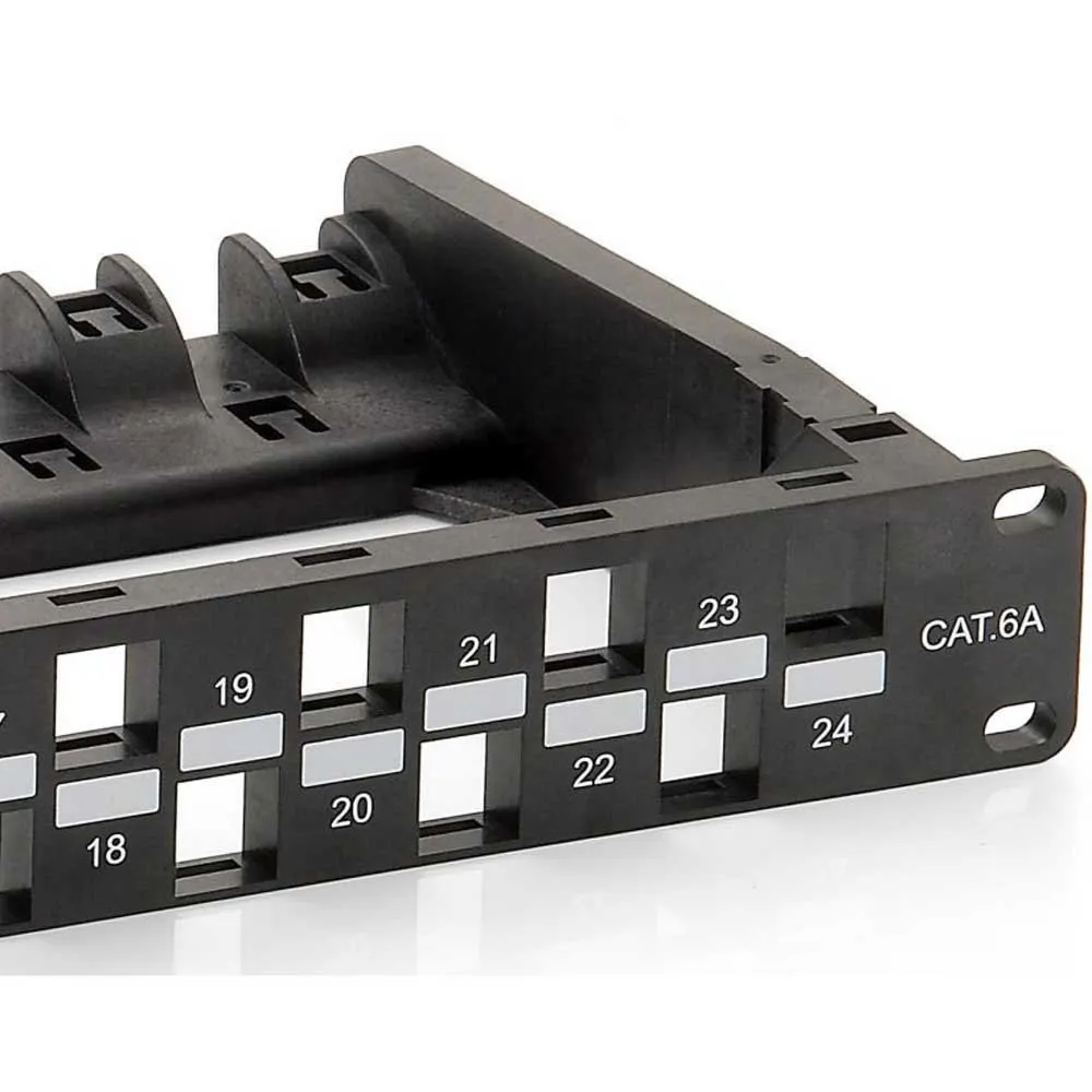 Denna patchpanel har 24 portar och rekommenderas att anslutas till equip® oskärmade keystone-jack och kablar.