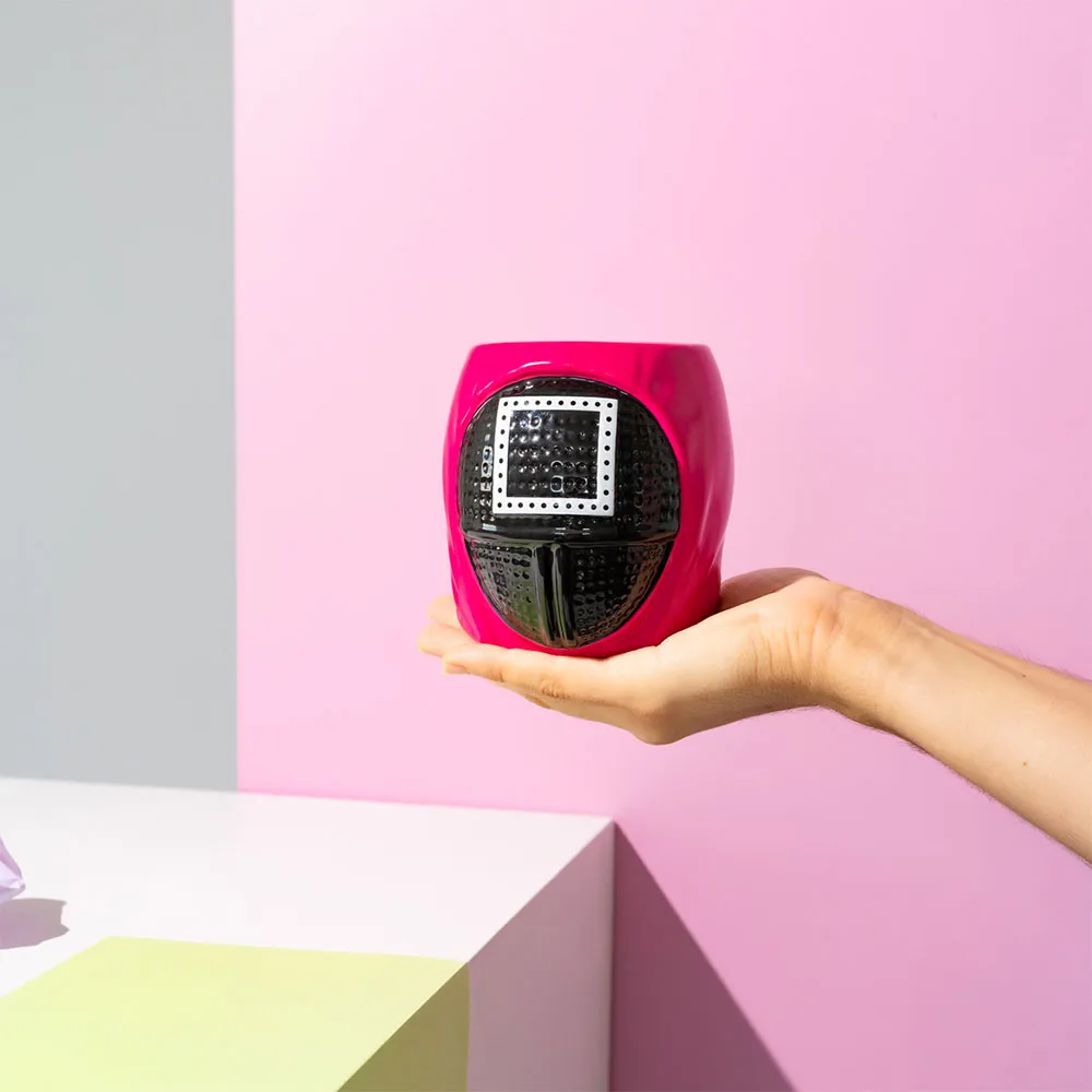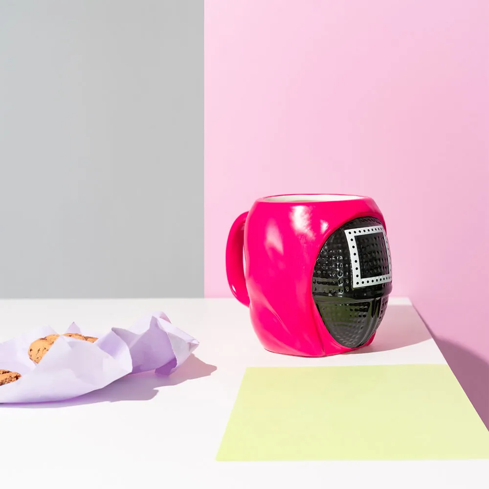Denna Squid Game-mugg har en 3D-design inspirerad av en av vakterna från den populära Netflix-serien.