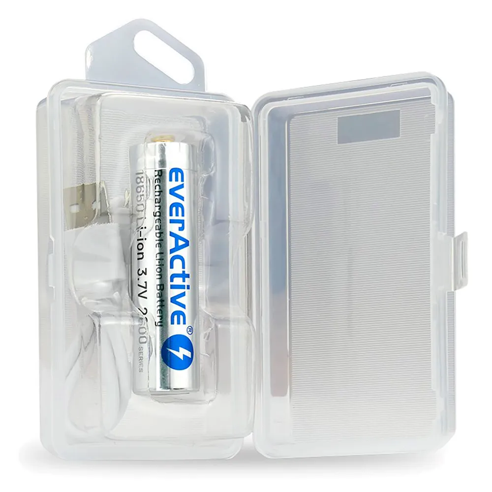 -Batteri everActive 18650 3.7V Li-ion 2600mAh micro USB med skyddslåda