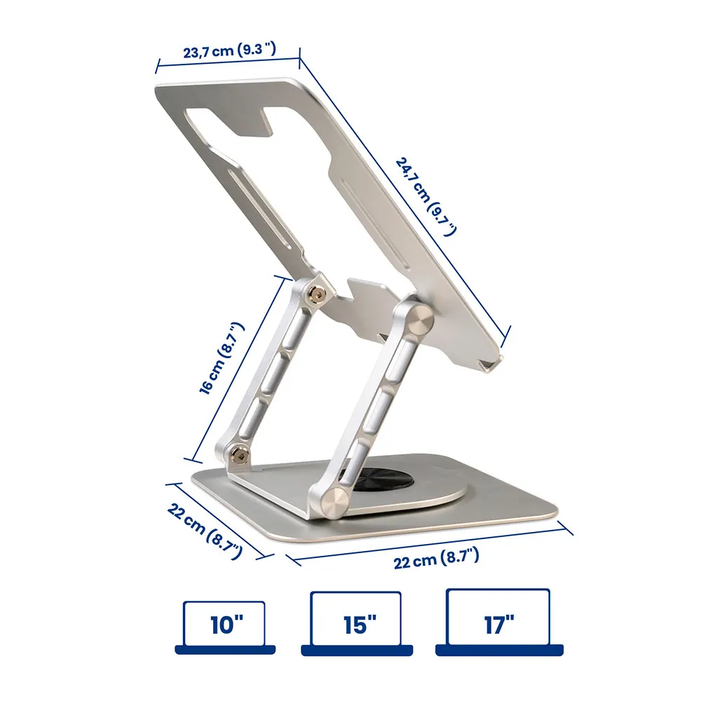 - Robust och stabil tillverkad av aluminiumlegering med halkfria silikonkuddar, så att din dator står stabilt på stativet