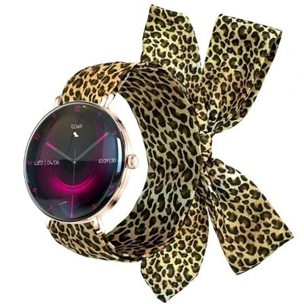 The Forever Lucca Smartwatch SB-370 kombinerar elegans och avancerad teknologi i en ultralätt feminin design med en roséguldfinish och utbytbart armband (metallnät och leopardmönster).
