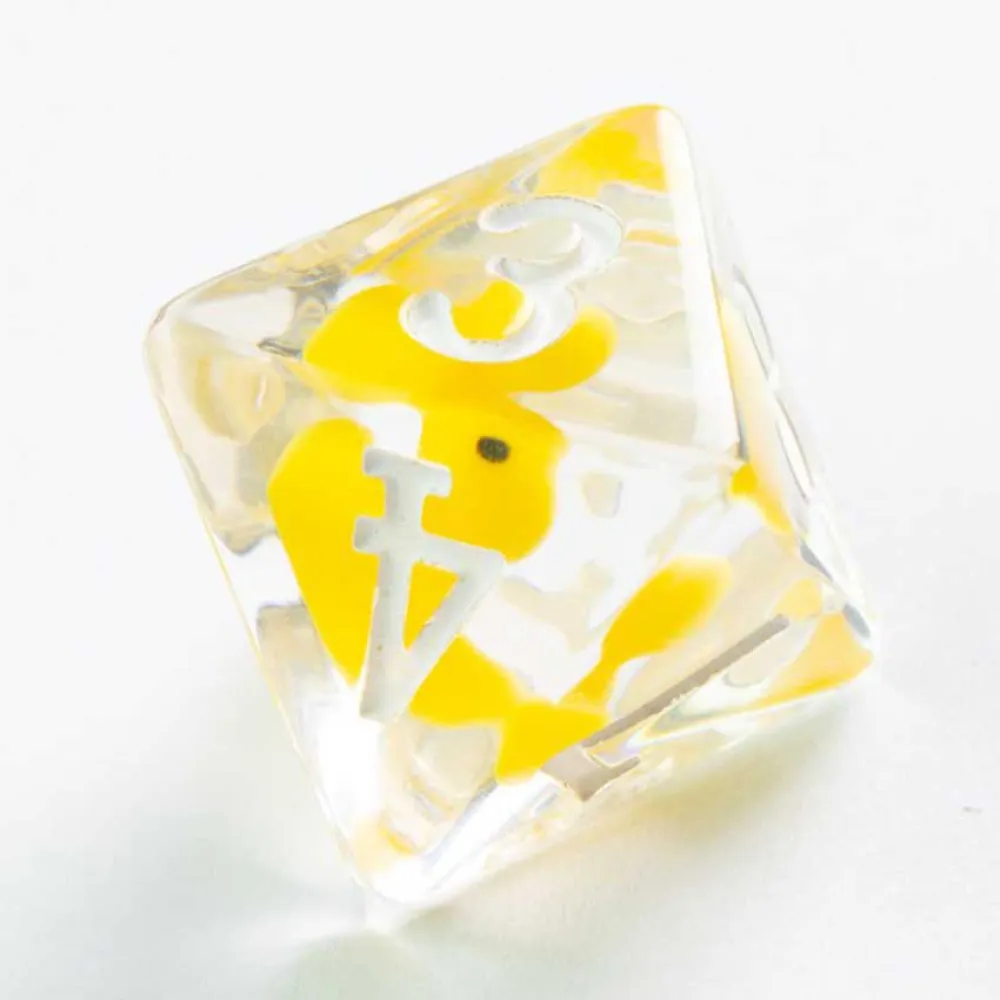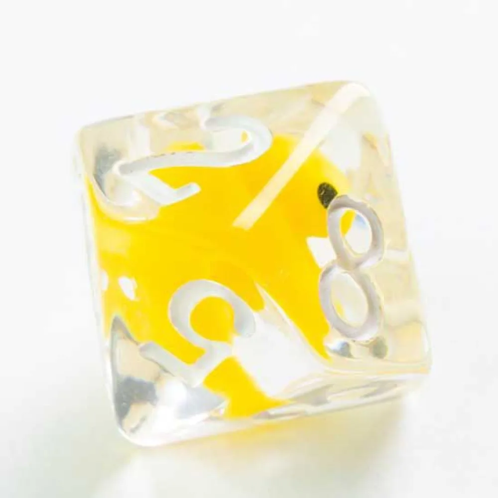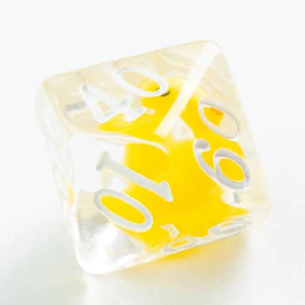Detta tärningsset innehåller en D4, en D6, en D8, två D10 (10 och 00), en D12 och en D20. Alla tärningar är rundade i kanterna och tillverkade på en premiumnivå. Tärningarna i Embraced Series har en intressant sak inuti och kommer att göra din spelkväll till en kritisk träff.