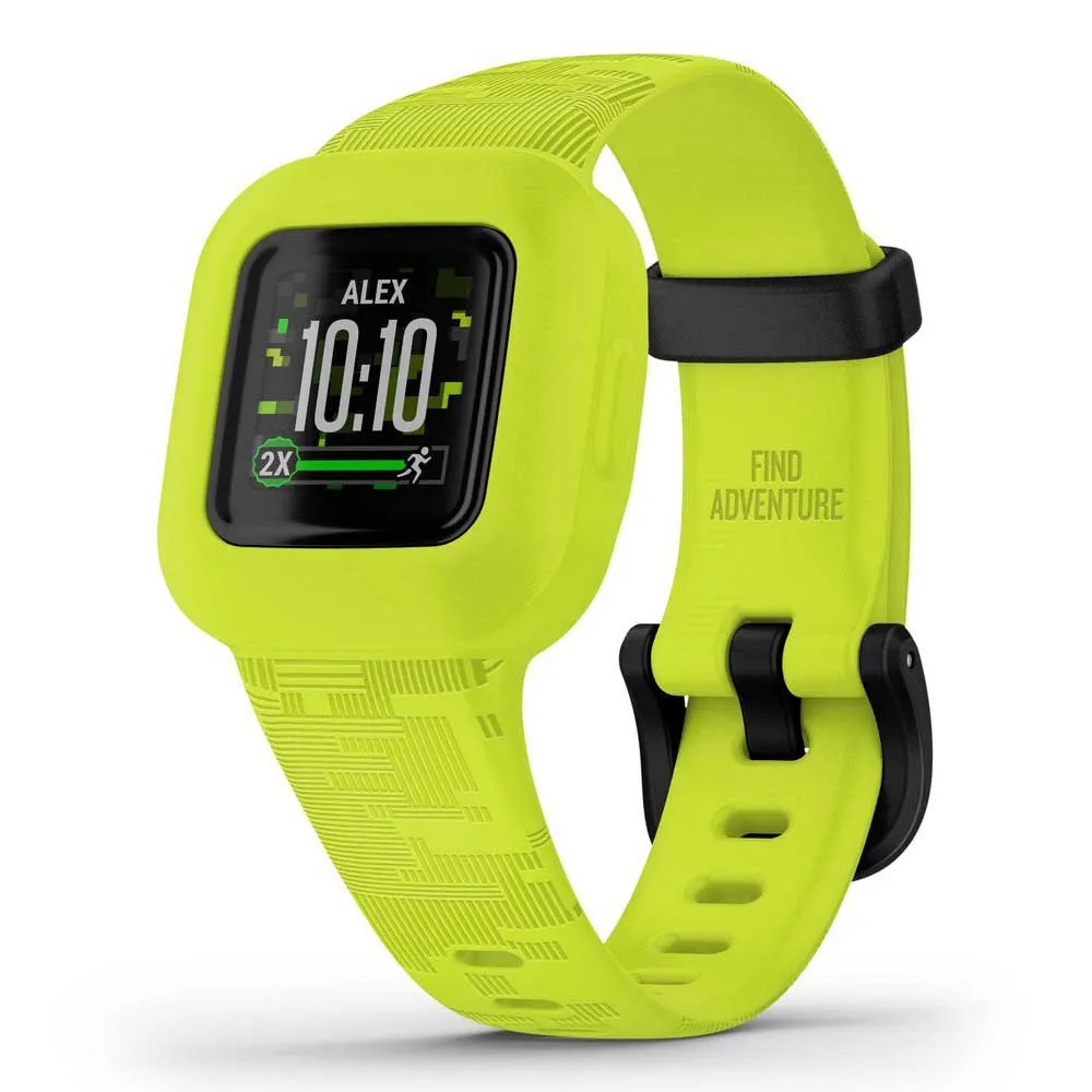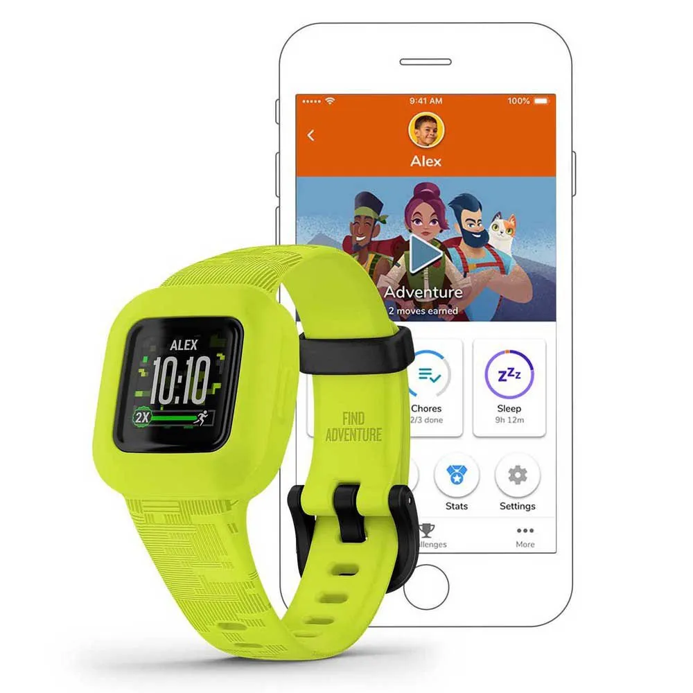 Förvandla träning till ett roligt globalt äventyr med Garmin Vivofit Junior 3! Mer än bara en smartklocka för barn, denna hållbara, simvänliga aktivitetsmätare låser upp pedagogiska appäventyr och spel när ditt barn håller sig aktivt. Föräldrar kan använda Garmin Jr.-appen för att tilldela sysslor, ge belöningar och övervaka aktivitet och sömn. Med en batteritid på 1 år (ingen laddning behövs!), en anpassningsbar färgskärm och en "In Case of Emergency"-widget för sinnesro, är det det perfekta sättet att uppmuntra en hälsosam och ansvarsfull livsstil för din lilla upptäcktsresande