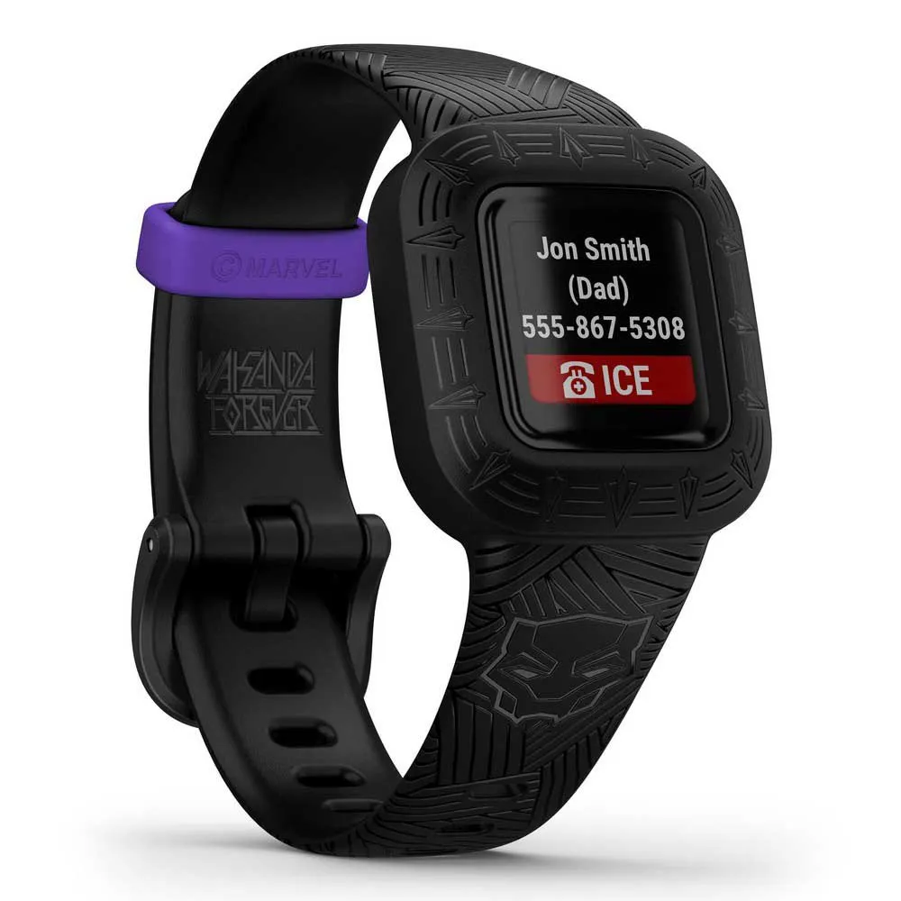 Garmin Vivofit Junior 3 Black Panther är en idealisk smartklocka för att motivera barn att hålla sig aktiva och organiserade. Dess Black Panther-inspirerade design gör den särskilt attraktiv för små Marvel-fans, som kombinerar nöje och funktionalitet. Det är hållbart och bekvämt, perfekt för dagligt bruk och erbjuder funktioner som aktivitetsspårning, sysslor tilldelade av föräldrar och rörelseutmaningar. Dessutom eliminerar dess långvariga batteri behovet av att ständigt ladda, vilket gör det mycket bekvämt. Ett utmärkt val för att uppmuntra till hälsosamma vanor medan barn njuter av ett spännande och användbart tillbehör.