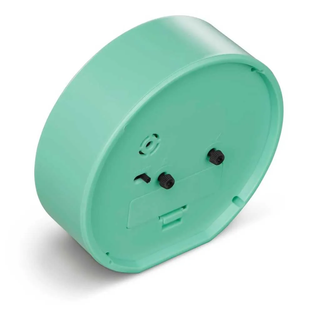 -Trendig design:-Denna väckarklocka kombinerar en charmig retrostil med glada färger som ger vitalitet till vilket rum som helst. Dess runda form och noggranna finish gör den till en både dekorativ och funktionell accessoar.