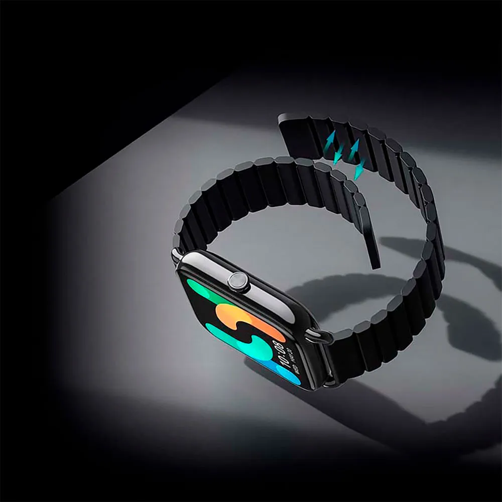 Haylou RS4 Plus is a waterproof smart watch with a rectangular shape and magnetic strap that features an incredible AMOLED screen, 108 sports modes, all-day heart rate tracking, and SpO2 monitoring.