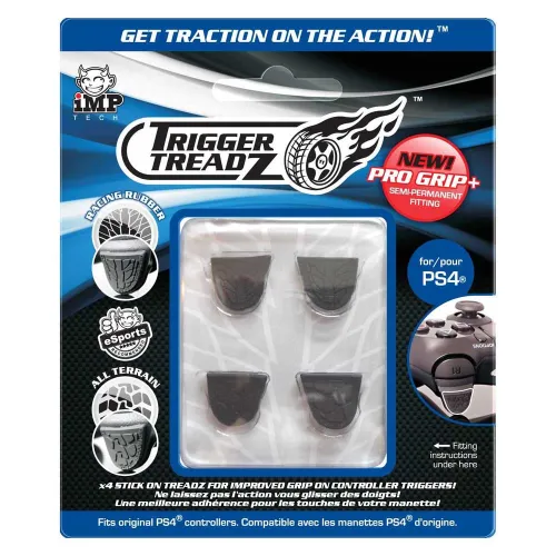 Släpp loss din fulla spelpotential med IMP TECH Trigger Treadz PS4-handkontrollgrepp.