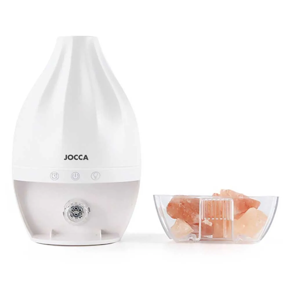 Joccas aromadiffusor och Himalaya-saltlampa frigör negativa joner som eliminerar dålig lukt och renar luften, vilket skapar en lugnande och avslappnande atmosfär. Joccas eteriska oljediffusor har rosa stenar som ger vackra designelement för att förbättra estetiken och skapa ett högkvalitativt dekorativt element för hemmet.