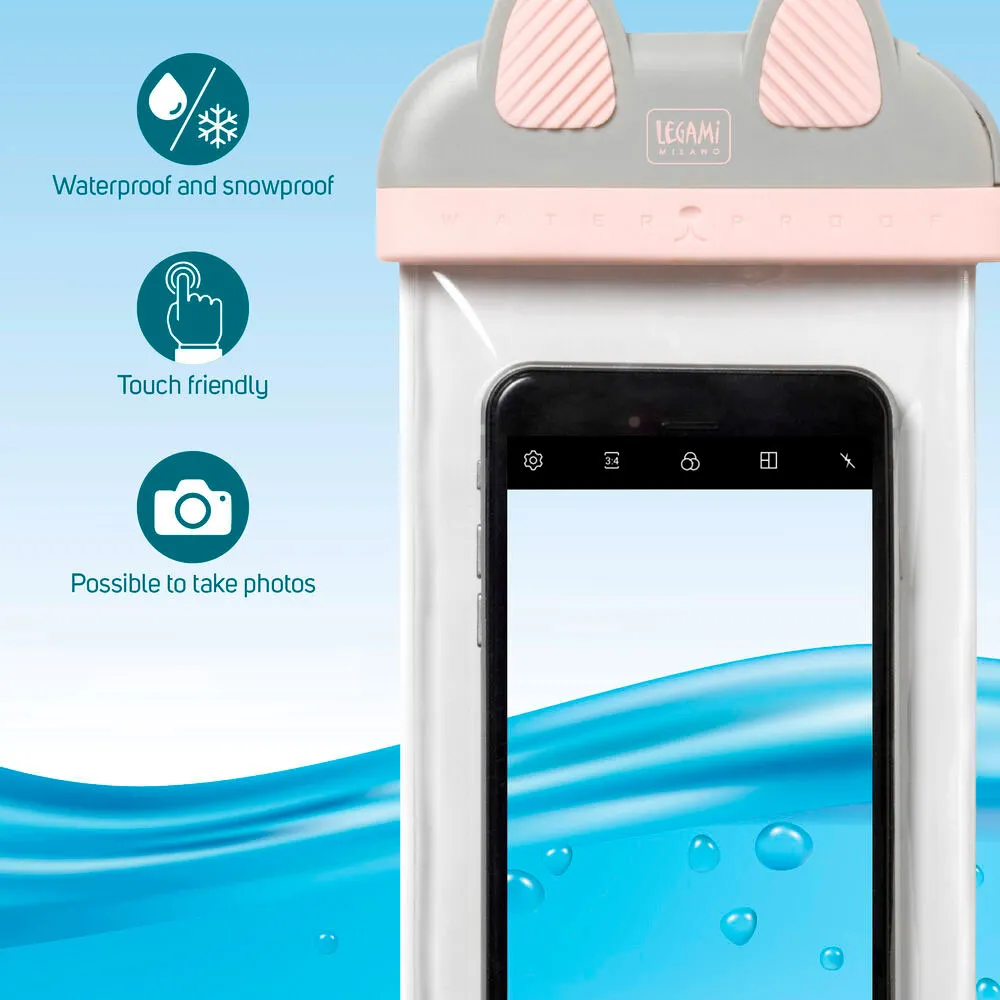 Seglar ut till havs i år. Legami Vattentätt Smartphonefodral - Kitty kommer att skydda din enhet från vattenskador. Med en hermetisk förslutning och avtagbar sladd inkluderad kan du koppla av medan du utforskar havet. Pekskärmskänsligheten gör att du kan ta foton och skicka meddelanden.