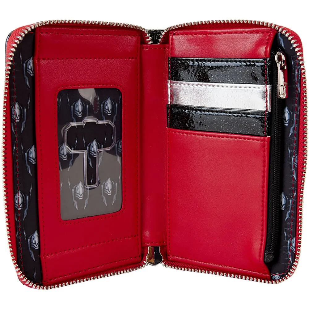 ”Återigen!” Den starkaste Avengern gör en storslagen entré som Loungefly Marvel Metallic Thor Cosplay Zip Around Wallet.