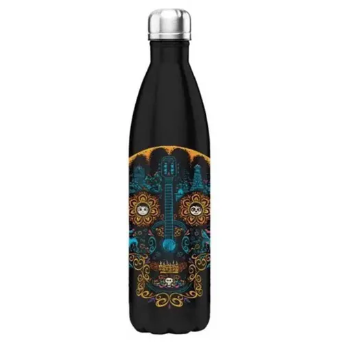 En underbar stålflaska med en kapacitet på inte mindre än 500 ml, idealisk för kalla drycker, och med en teckning baserad på en mycket älskad Disney-karaktär: Coco. Design med svart bakgrund och en stor form av en mexikansk skalle som består av små detaljer från filmen Coco, det är definitivt fantastiskt. En produkt som utan tvekan kommer att vara en användbar och mycket originell gåva till alla fans av Coco och Disney-universumet.