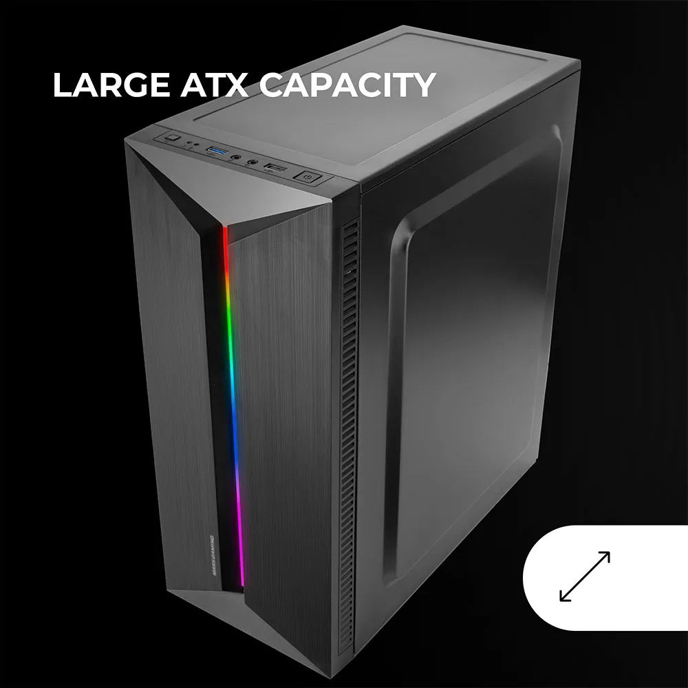 MC-BLAZE kombinerar modern design, belysning och termisk effektivitet och erbjuder en perfekt balans mellan stil och funktionalitet. Dess LED-remsa framtill och fönster över hela sidan visar varje komponent med en ren och sofistikerad finish. Utrustad med en FRGB bakre fläkt och sidventil garanterar den optimerat luftflöde. Kompatibel med ATX, Micro-ATX och Mini-ITX moderkort, den stöder grafikkort upp till 300 mm och har 7 expansionsplatser, vilket säkerställer maximal mångsidighet i alla konfigurationer.