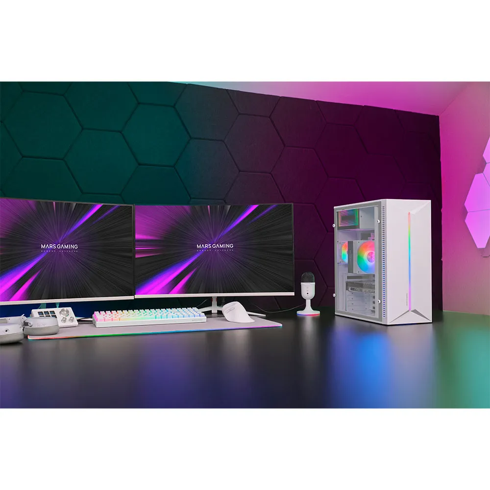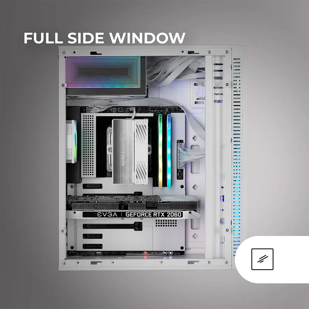 MC-BLAZE kombinerar modern design, belysning och termisk effektivitet och erbjuder en perfekt balans mellan stil och funktionalitet. Dess LED-remsa framtill och fönster över hela sidan visar varje komponent med en ren och sofistikerad finish. Utrustad med en FRGB bakre fläkt och sidventil garanterar den optimerat luftflöde. Kompatibel med ATX, Micro-ATX och Mini-ITX moderkort, stöder den grafikkort upp till 300 mm och har 7 expansionsplatser, vilket säkerställer maximal mångsidighet i alla konfigurationer.