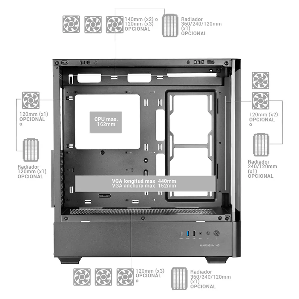 Produktbeskrivning för Mars Gaming MC-LCDPRO PC-tornfodral