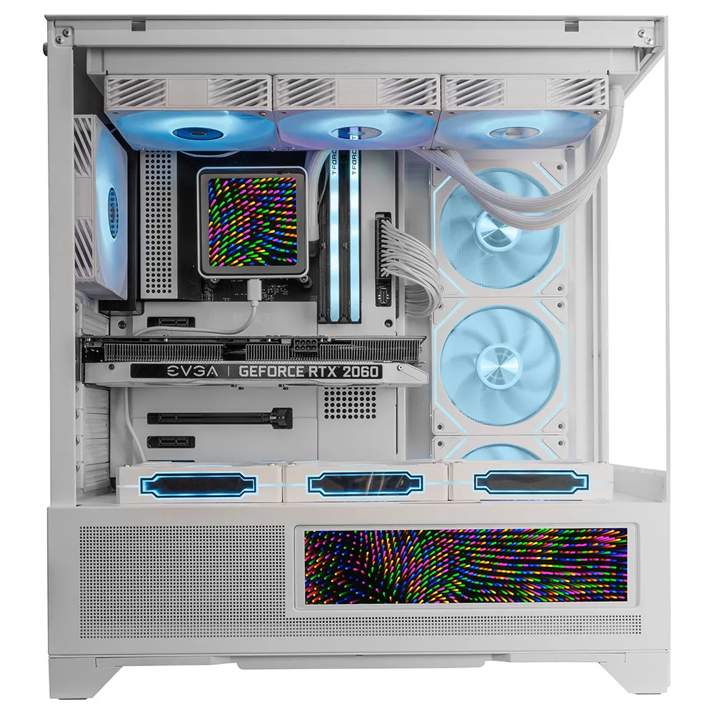 Denna panoramiska design förstärker varje komponent i din setup, idealisk för gamingbyggen med ARGB-belysning eller professionella sammansättningar med hög uppmärksamhet på detaljer.