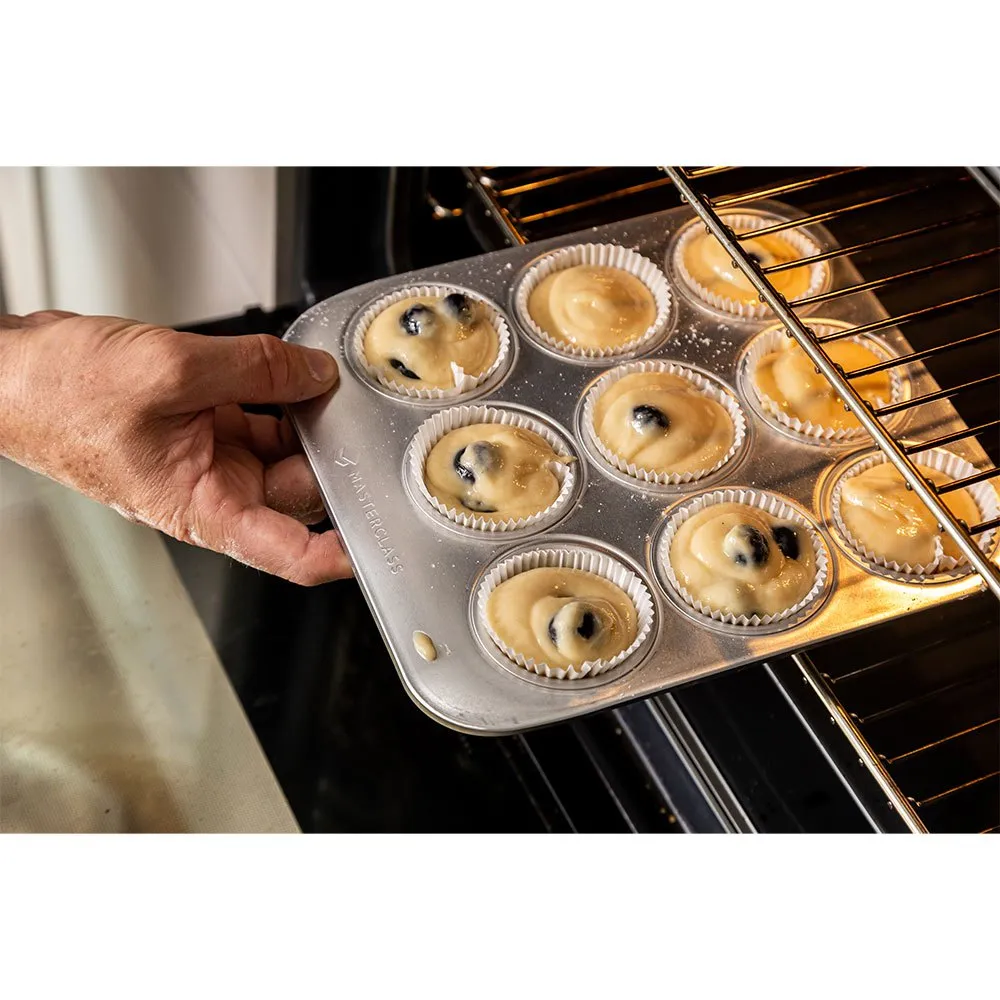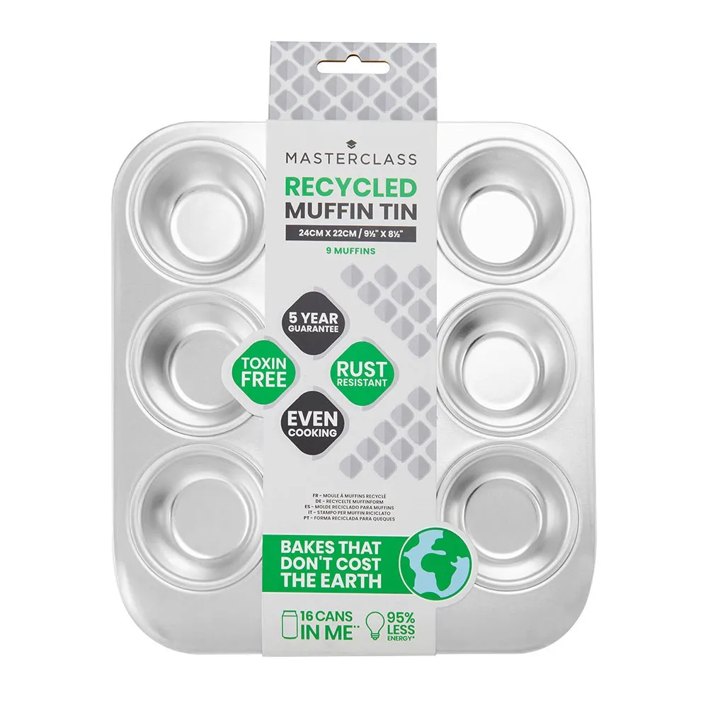 Vispa ihop en sats blåbärsmuffins, minimuffins eller andra små läckerheter utan ansträngning med denna 9-håls muffinsplåt från MasterClass Recycled Aluminium-serien.